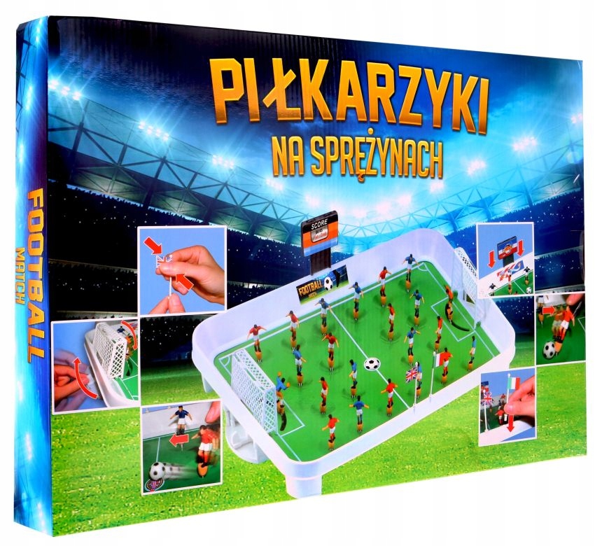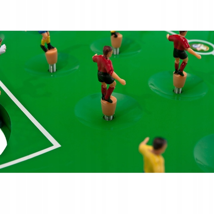 Настольный футбол установлен на специальных пружинах, что позволяет играть в мяч, передавать его и бросать. у цели. Вратари управляются с помощью рукоятки, что позволяет им активно защищать свои ворота. В каждой команде по 11 игроков.