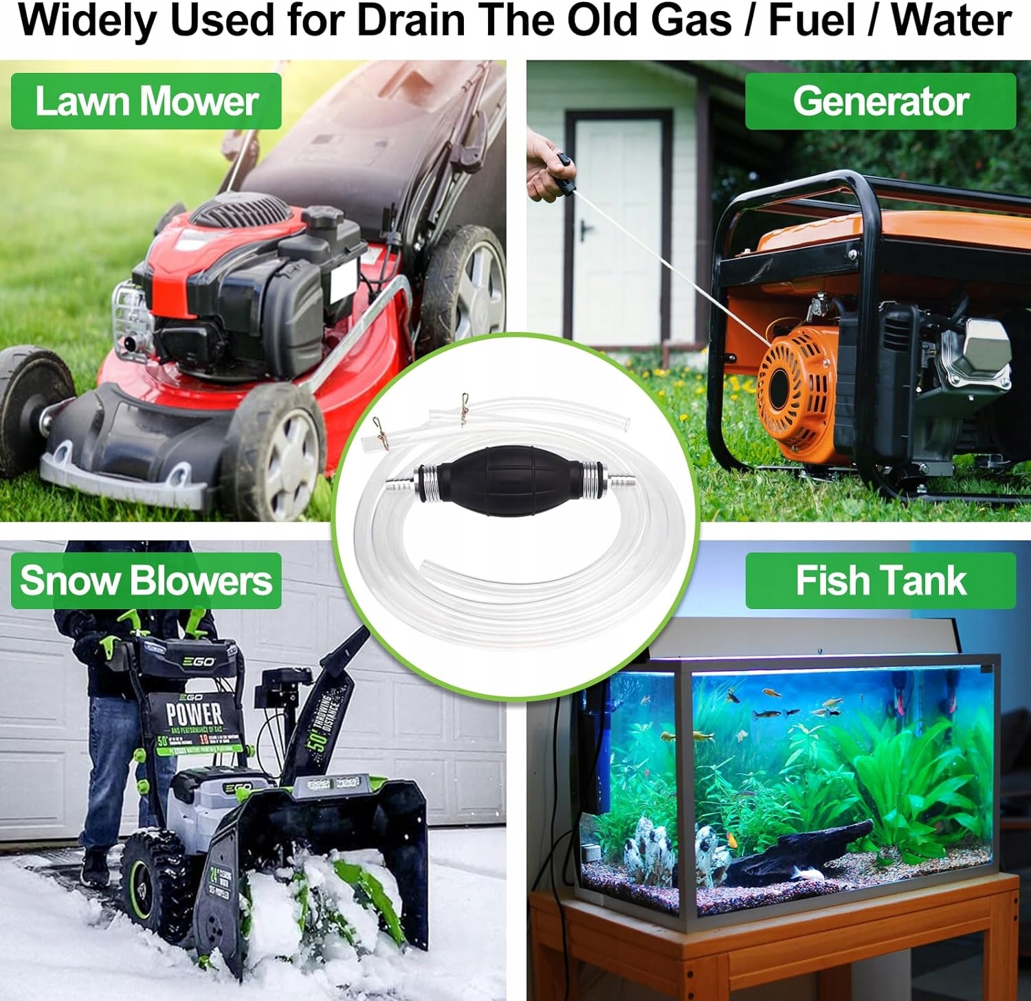 Широко используется: идеально подходит для безопасной транспортировки бензина, бензина, бензина, дизельного топлива, воды или неагрессивных жидкостей. Используется на кораблях, транспортных средствах, газонокосилках, тракторах, мотоциклах, водяных кроватях, аквариумах и других сифонах для жидкостей.