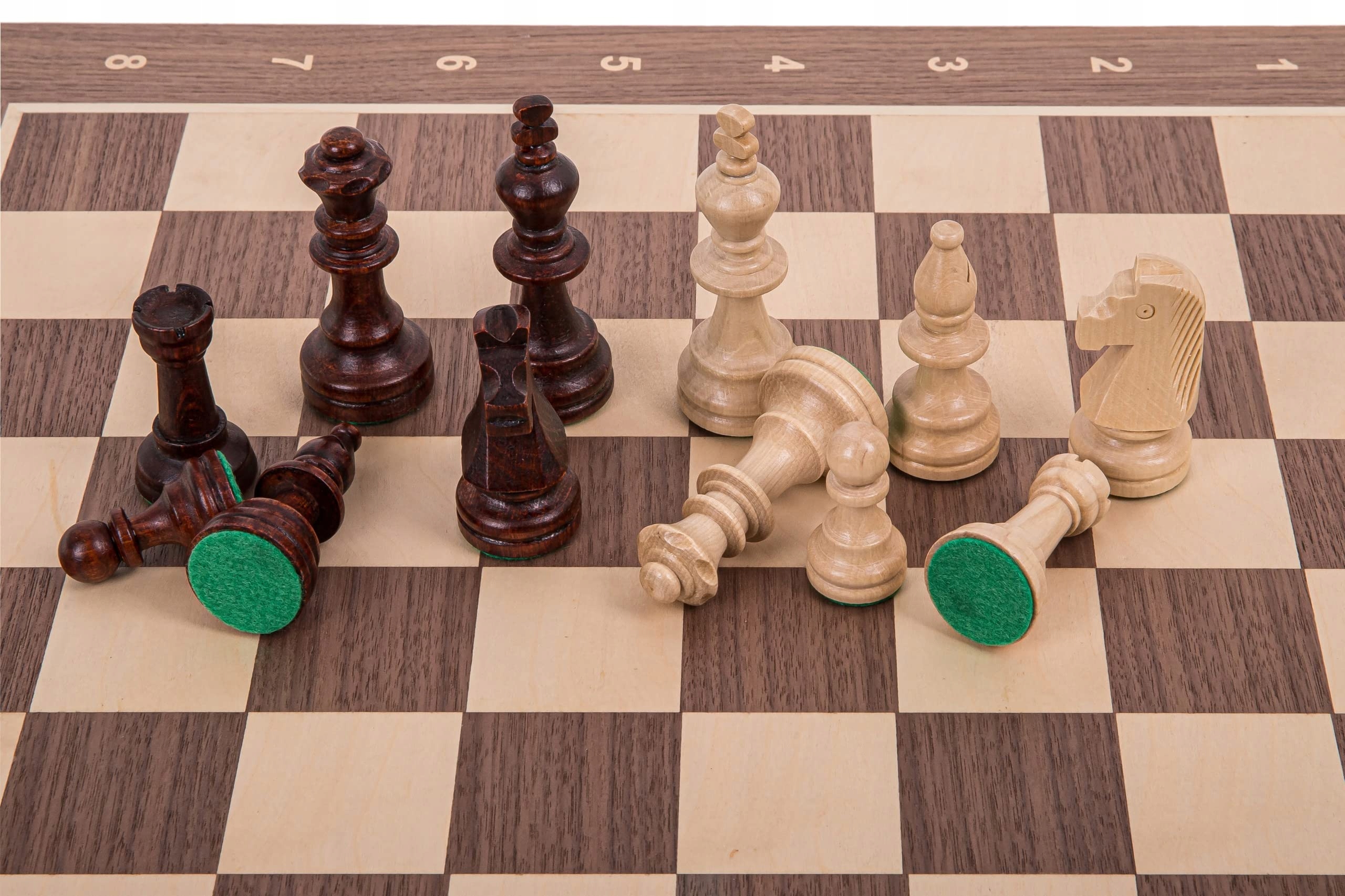 • Описание продукта : профессиональный набор турнира № 5 INTRANSIA - Walnut/Jawor Wood; Размеры: 500 x 500 x 15 мм - поле с размерами: 50 х 50 мм, шахматные фигуры № 5 - Стюнтон Профессиональные FTS, изготовленные из дерева, загруженные металлом. Фигуры Высота: король 91 мм, ствол из дерева, лакированный в красном дереве. Размеры: 340 x 270 x 52 мм