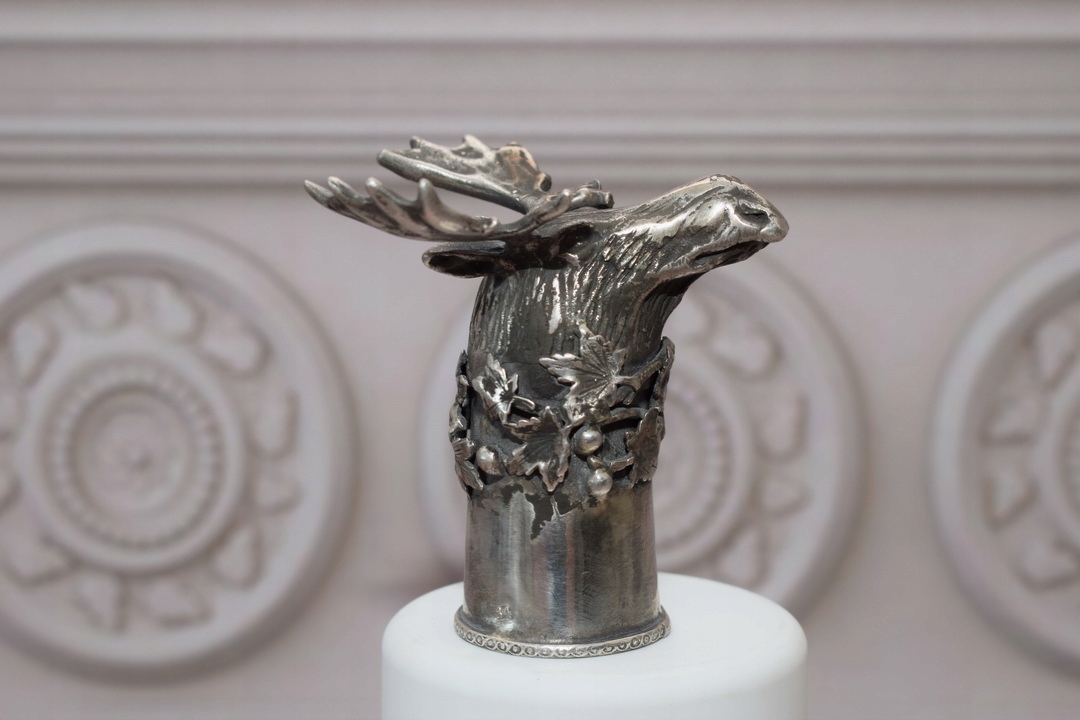 Srebrna Kulawka Myśliwska - Kieliszek Srebro - Jeleń Łoś Carska Rosja
