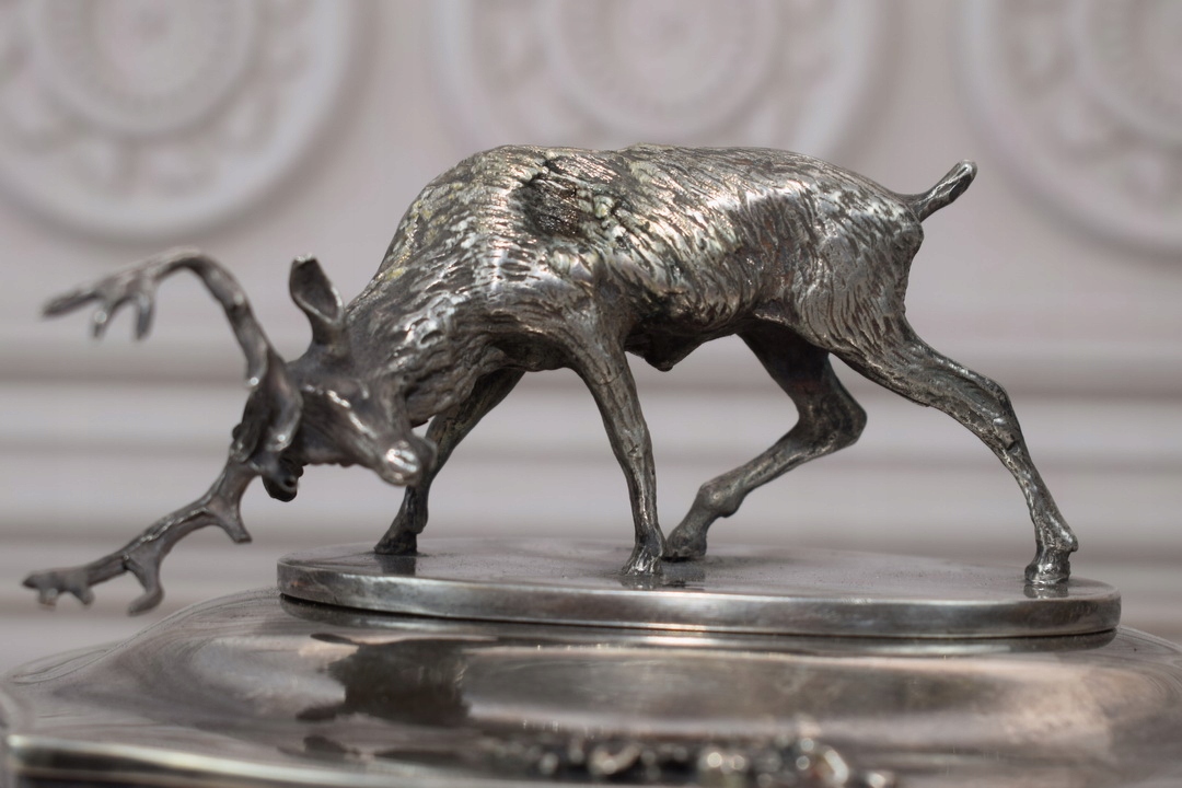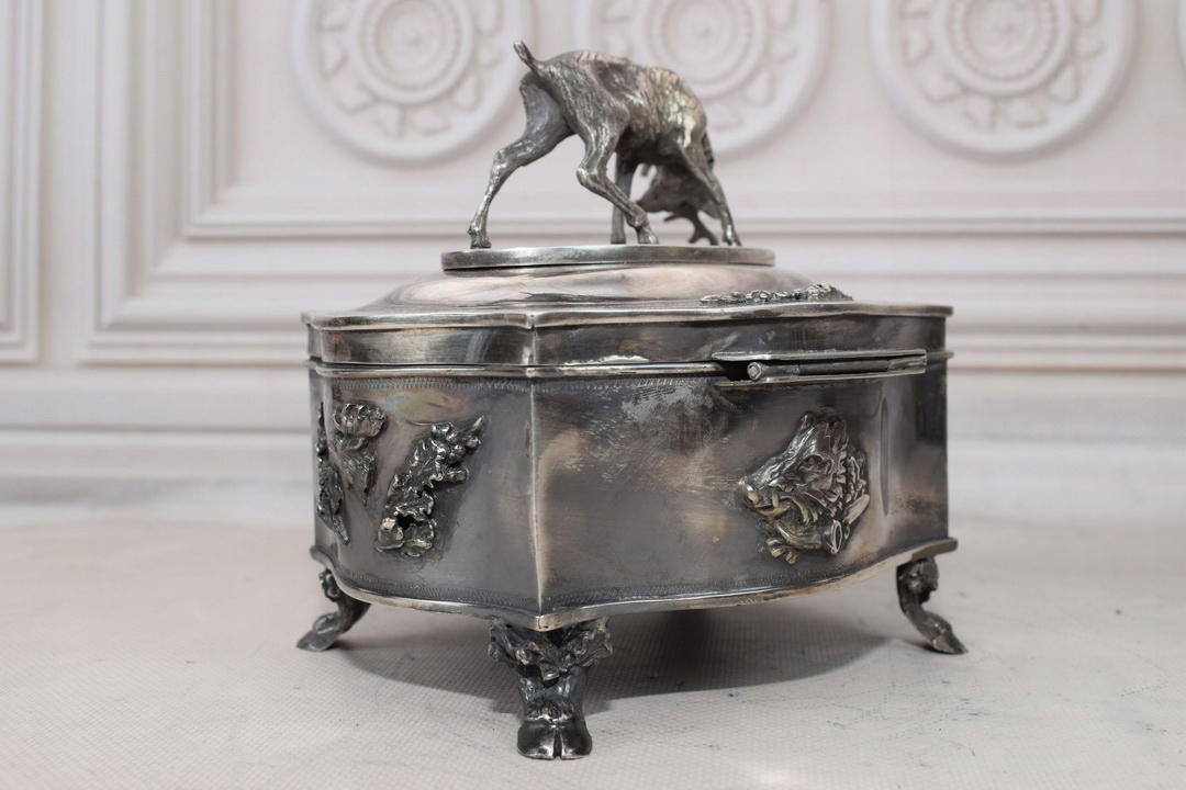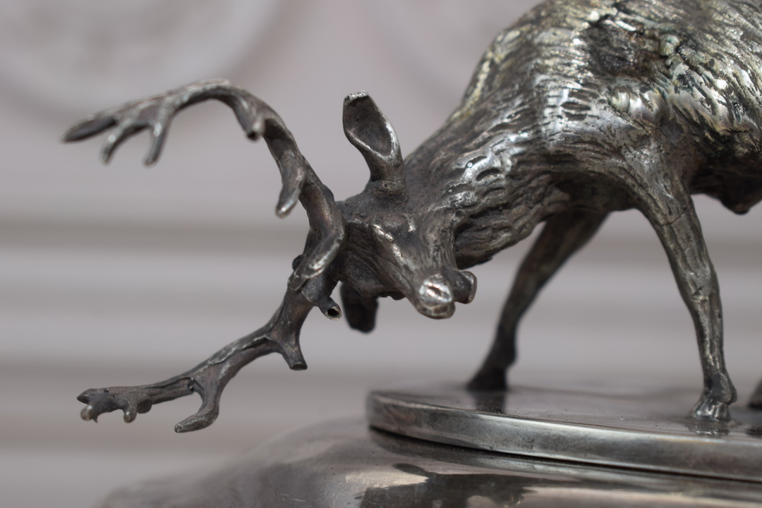 Srebrna Myśliwska Cukiernica - Łoś - Carska Rosja 84 Srebro Unikat