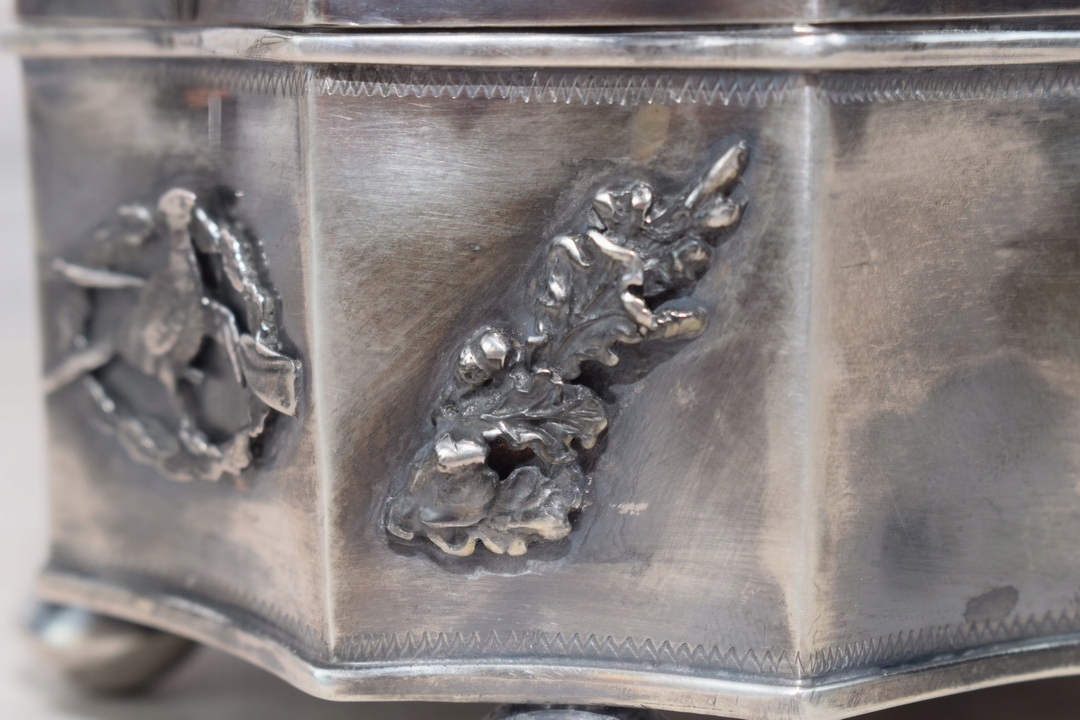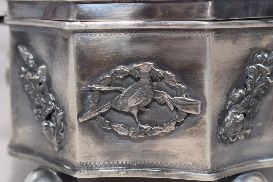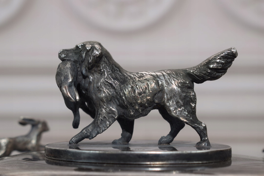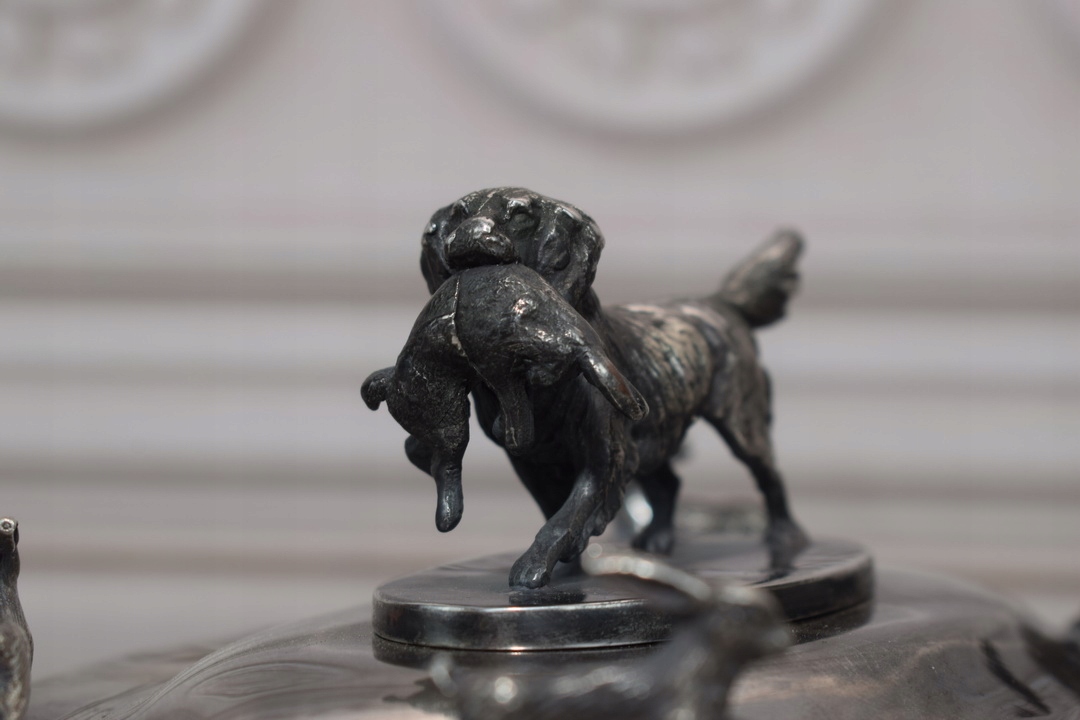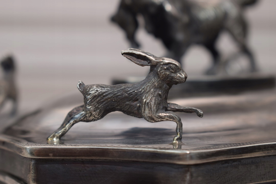 Srebrna Myśliwska Cukiernica - Pies z Kaczka - Carska Rosja 84 Srebro