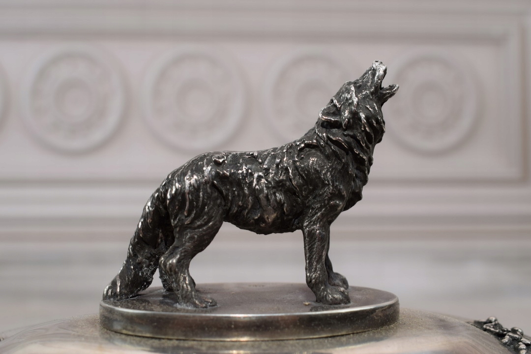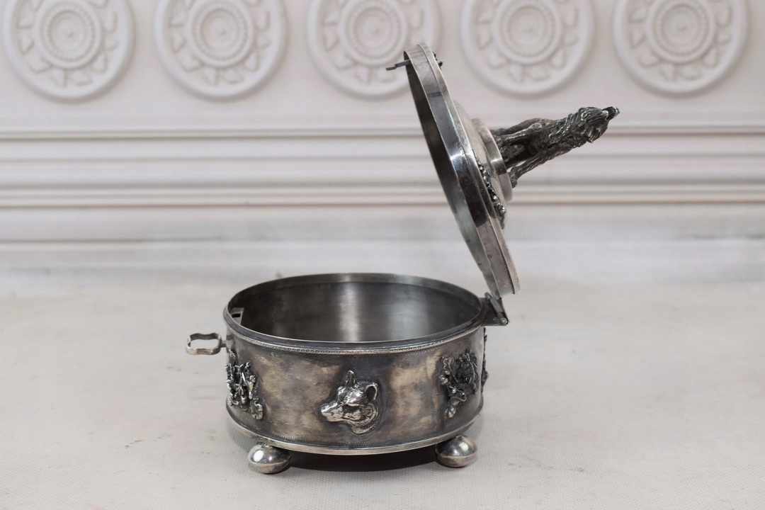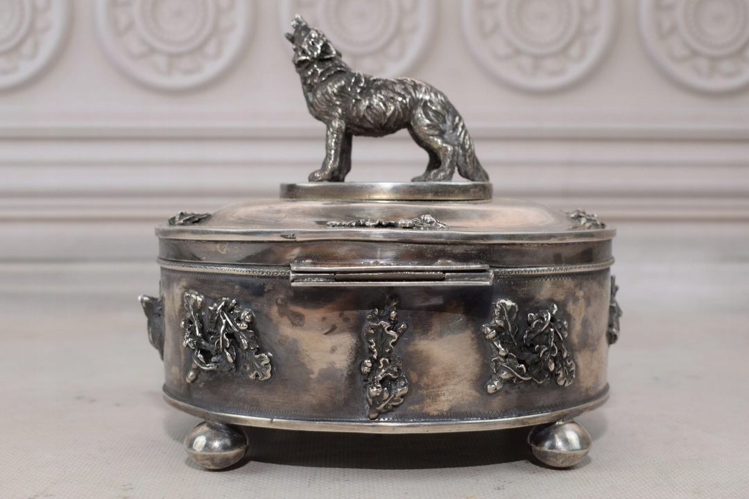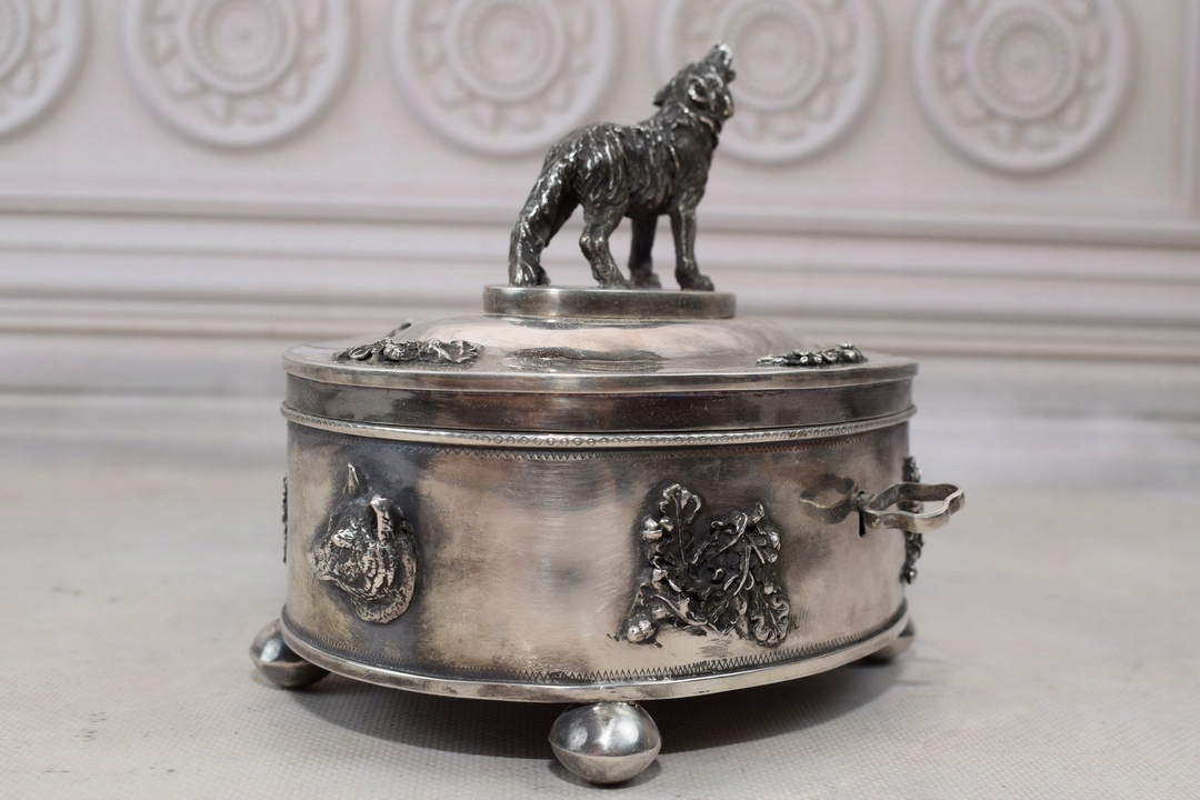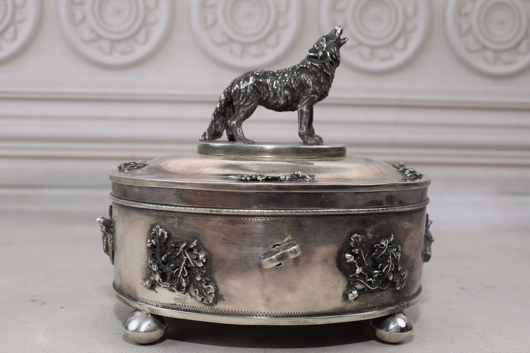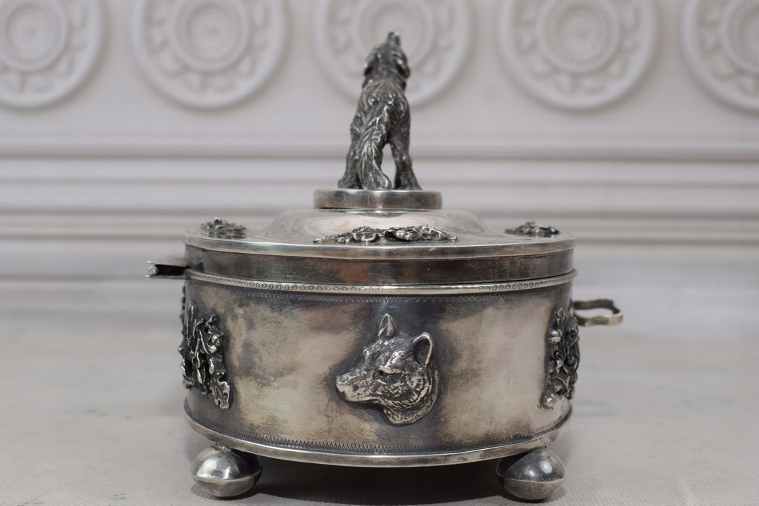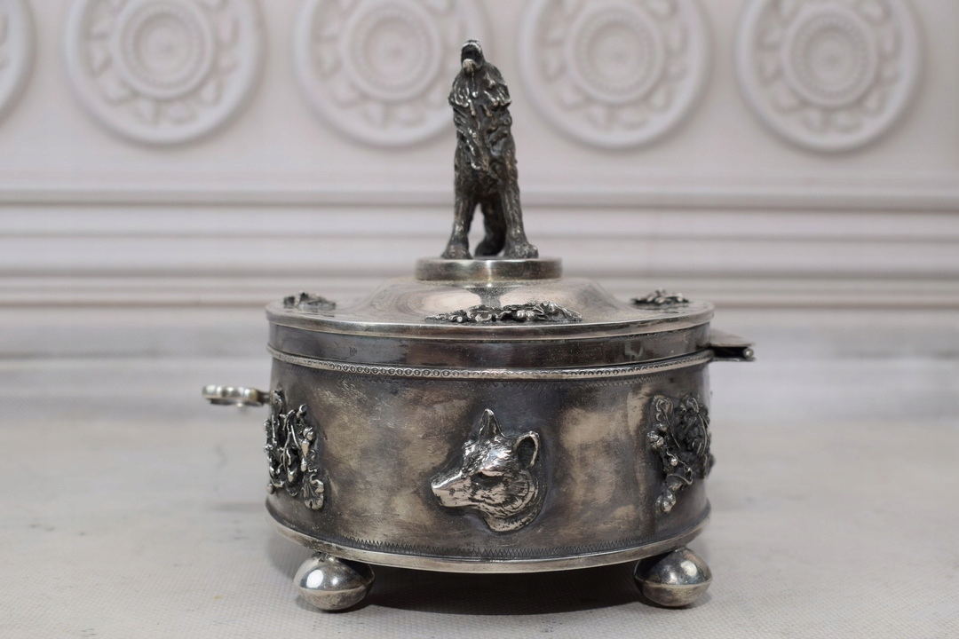 Srebrna Myśliwska Cukiernica - WILK - Carska Rosja 84 Srebro 617G