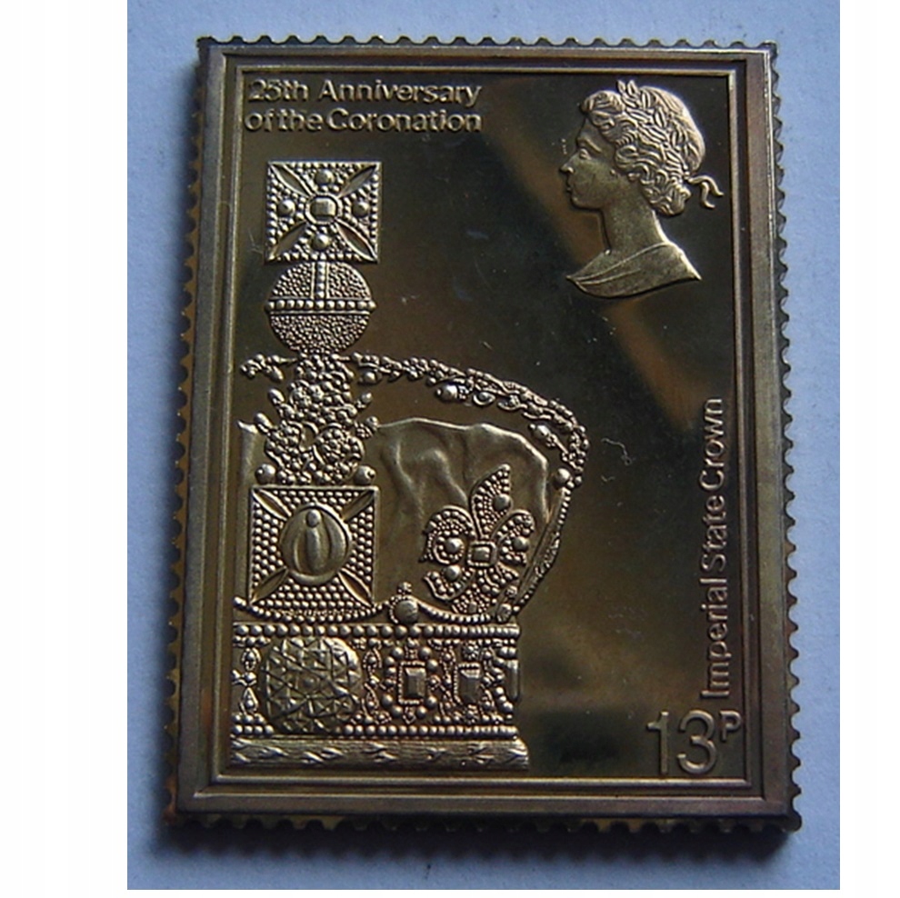 Позолоченный серебряная копия почтовой марки, посвящённой 25-летию со дня коронации королевы Елизаветы II, Лондон, 1979 г.