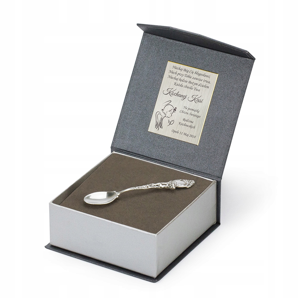 SREBRNA ŁYŻECZKA Pamiątka CHRZEST URODZINY +Grawer