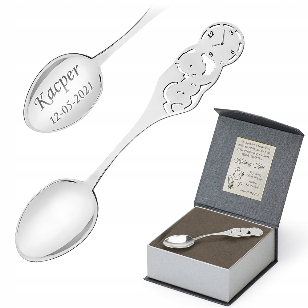 SREBRNA ŁYŻECZKA Pamiątka CHRZEST urodziny Grawer