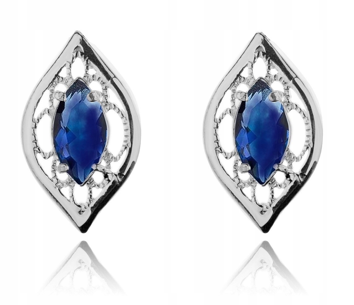 SREBRNE AŻUROWE KLIPSY Z GRANATOWYMI CYRKONIAMI