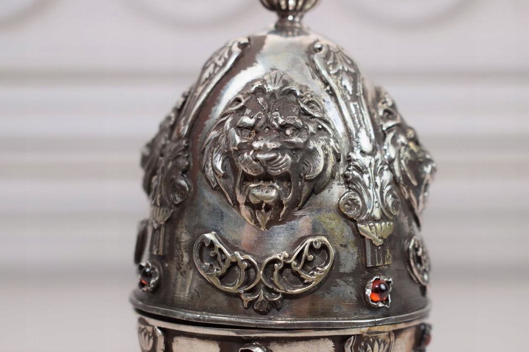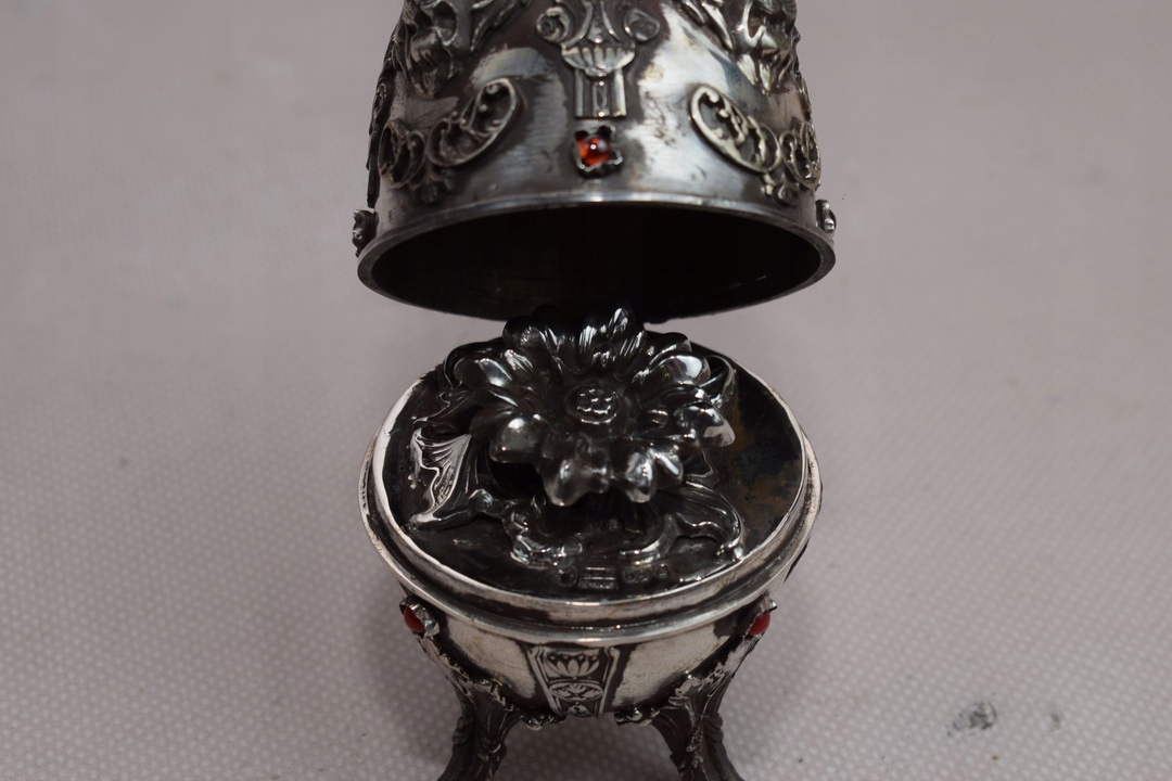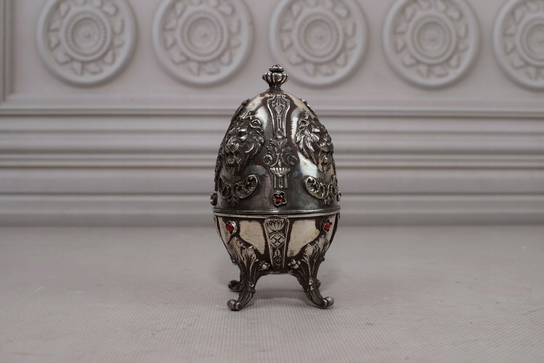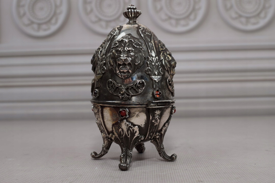 Srebrne Carskie Jajo Srebro 84 Jajko - Lew, Kwiat Mocna Rzeźba - Unikat