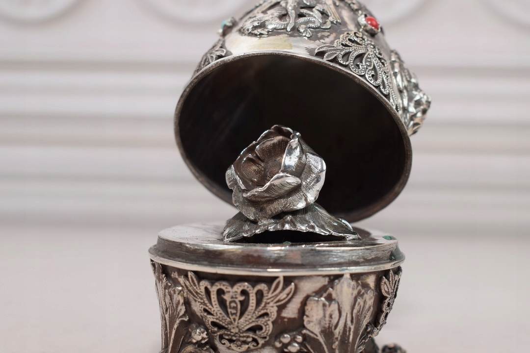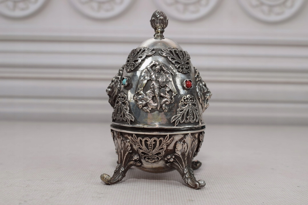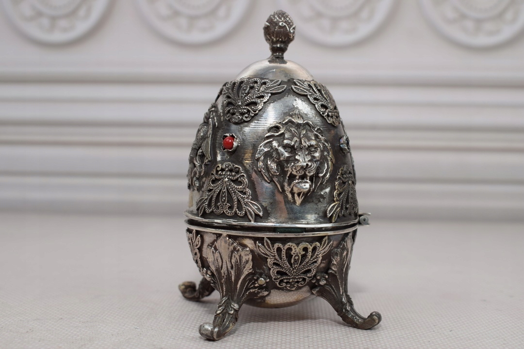 Srebrne Carskie Jajo Srebro 84 Jajko - Lew, Św. Jerzy Repus - Unikat
