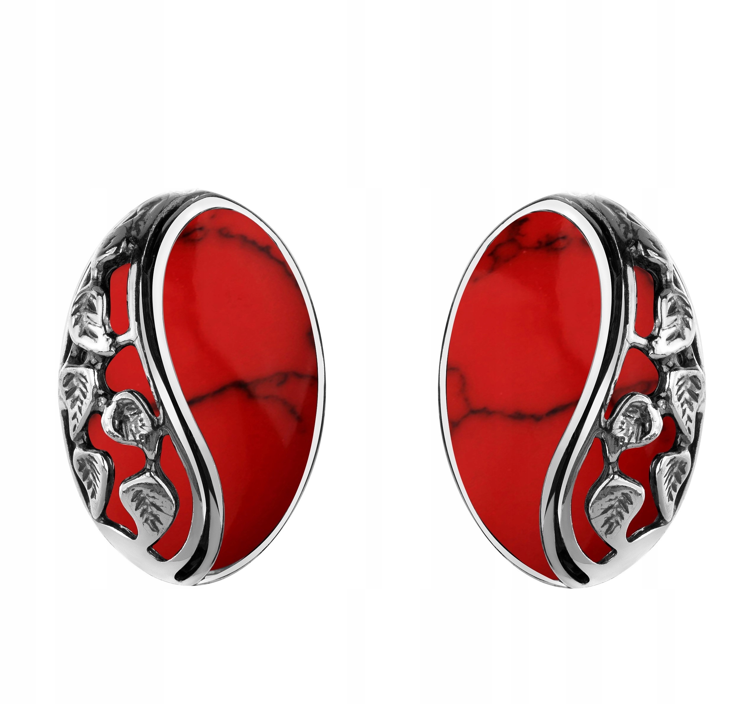SREBRNE KLIPSY Z KORALAMI I LISTKAMI Pr925