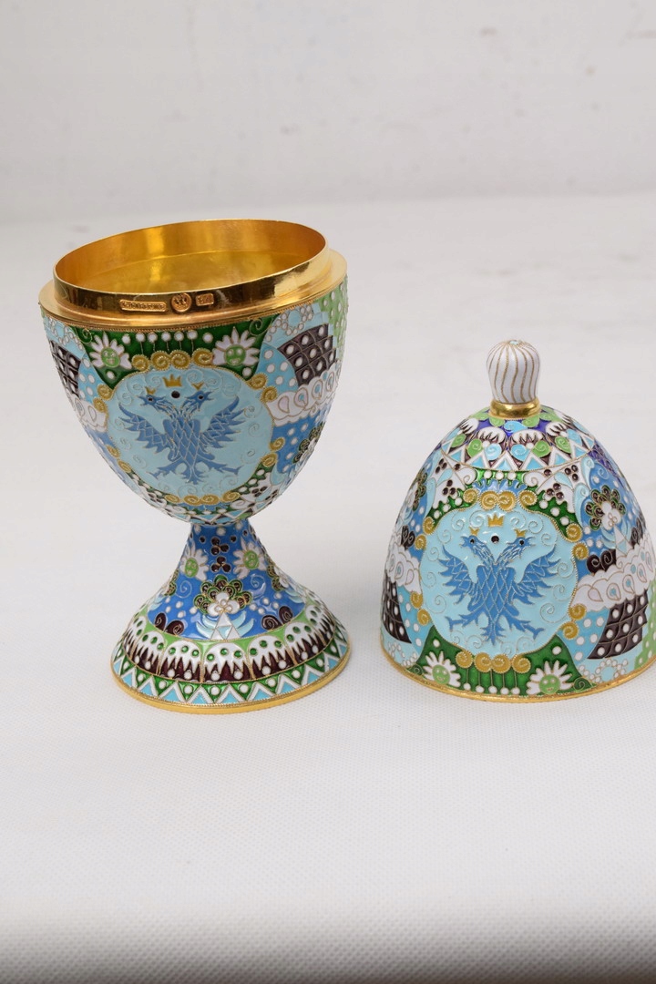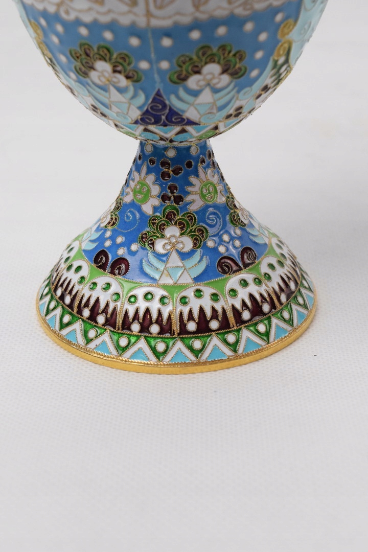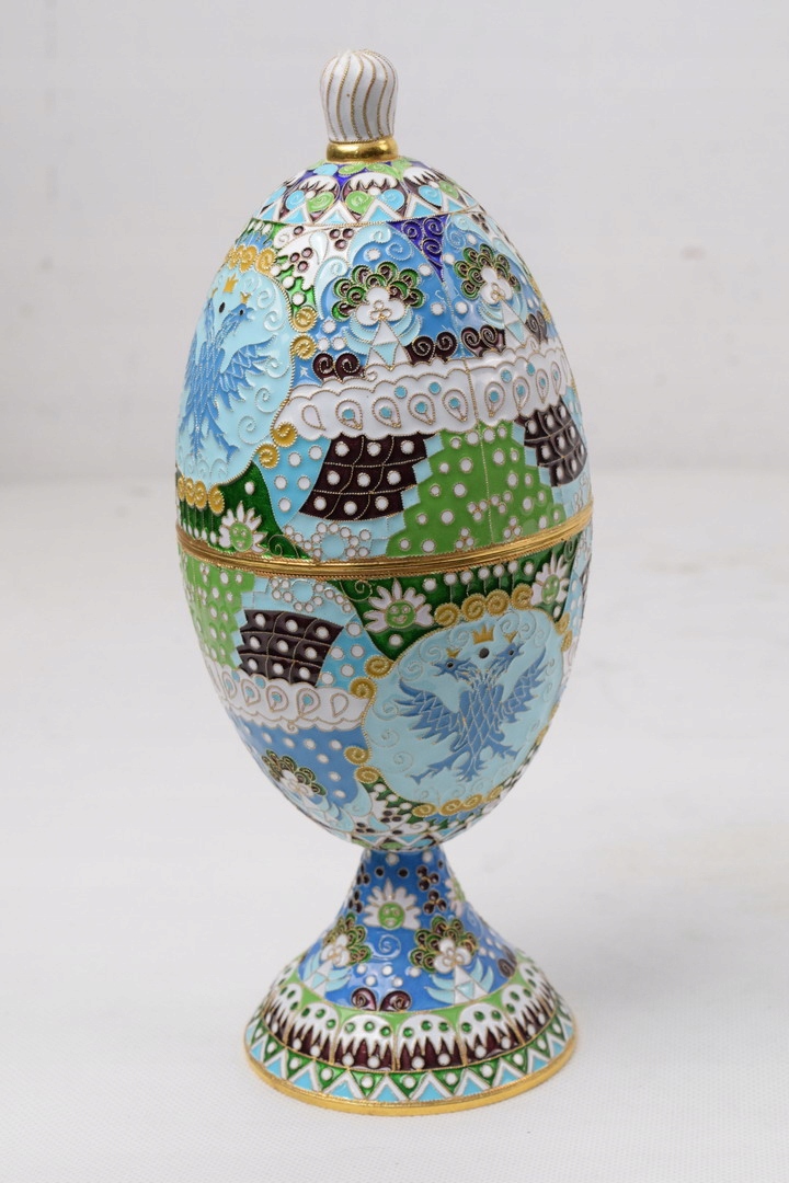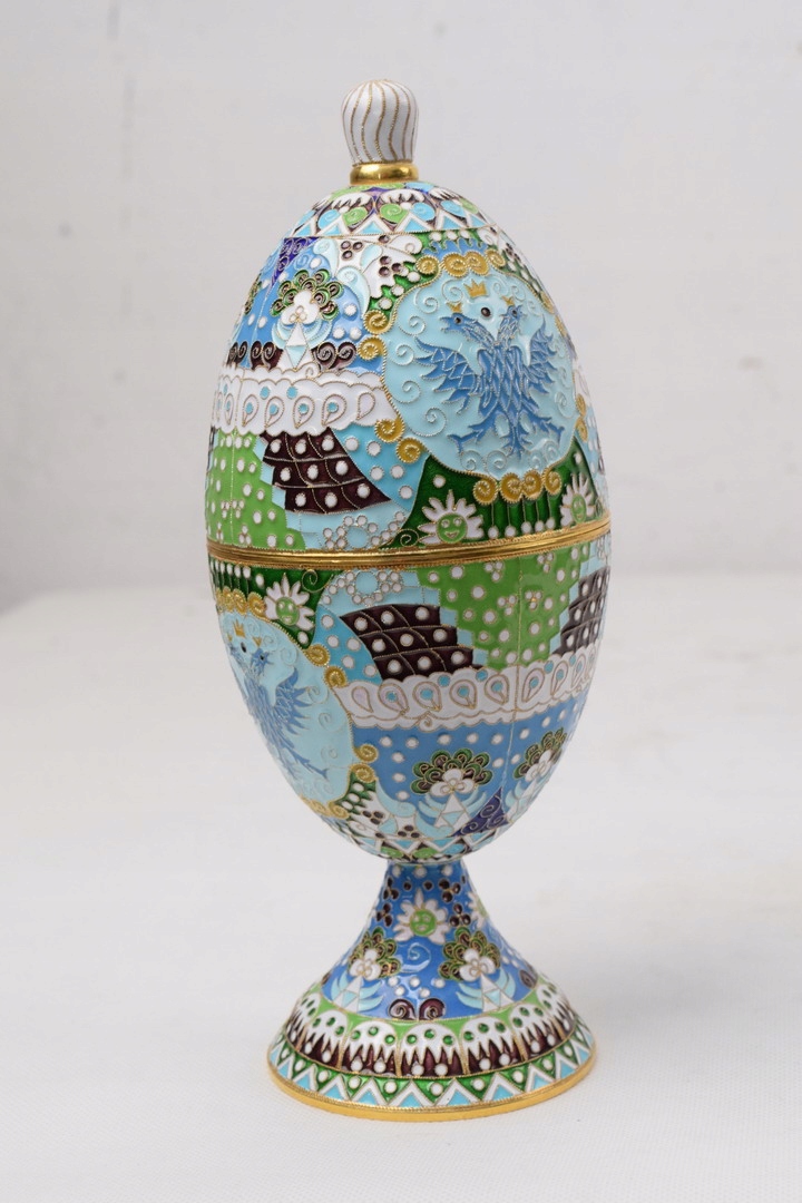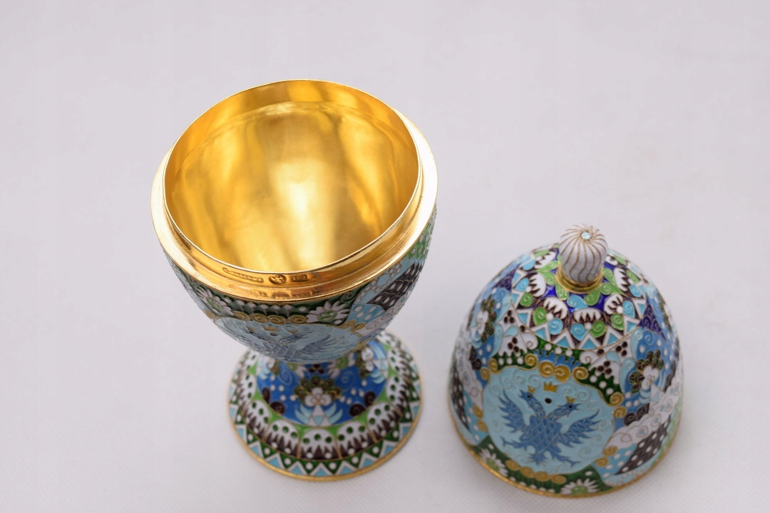 Srebrne Złocone Jajo - Srebro Emalia Carska Rosja pr. 84 - 474 g - UNIKAT