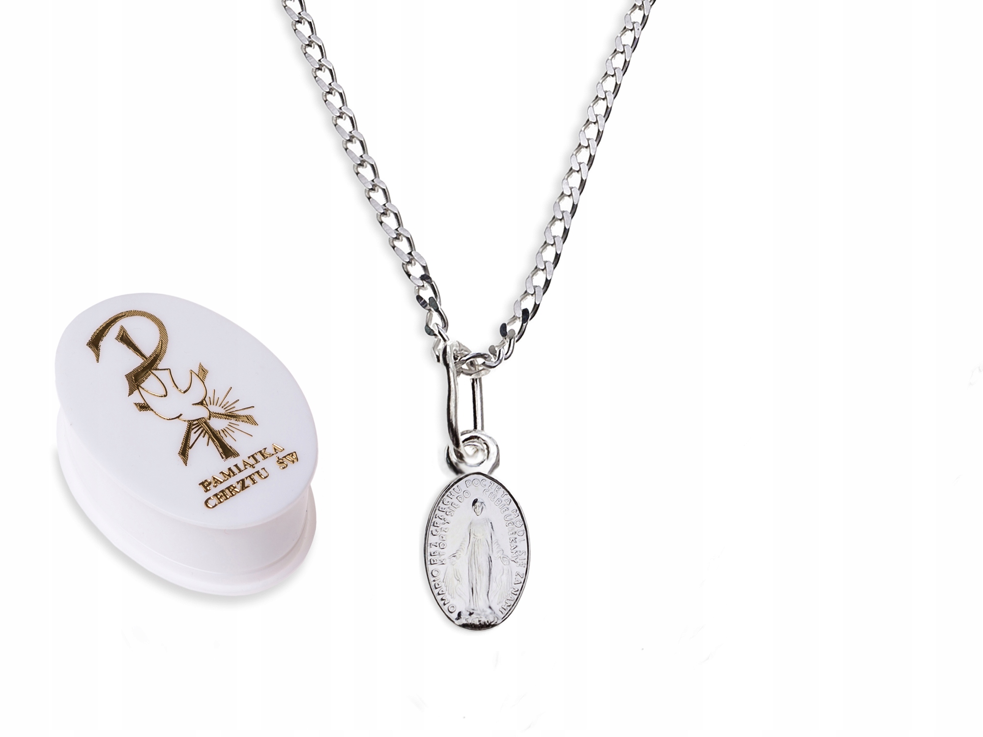 SREBRNY ŁAŃCUSZEK Z MEDALIKIEM PAMIATKA KOMUNII ŚW