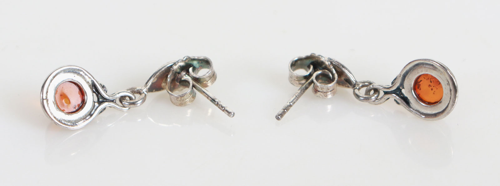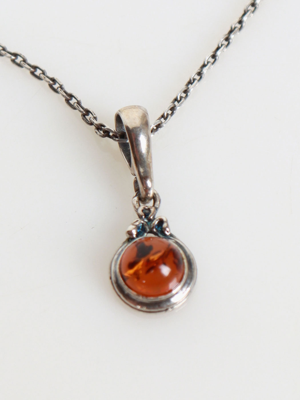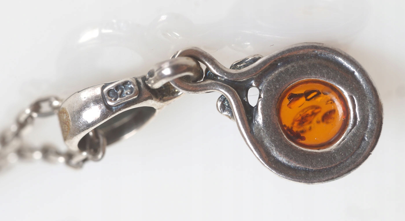 Srebrny naszyjnik + kolczyki, dekorowane bursztynami!