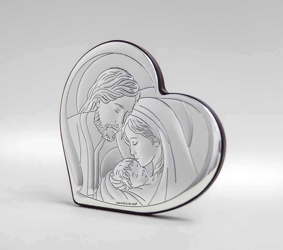 Серебряная картина на венчание Святого Семейства с гравировкой