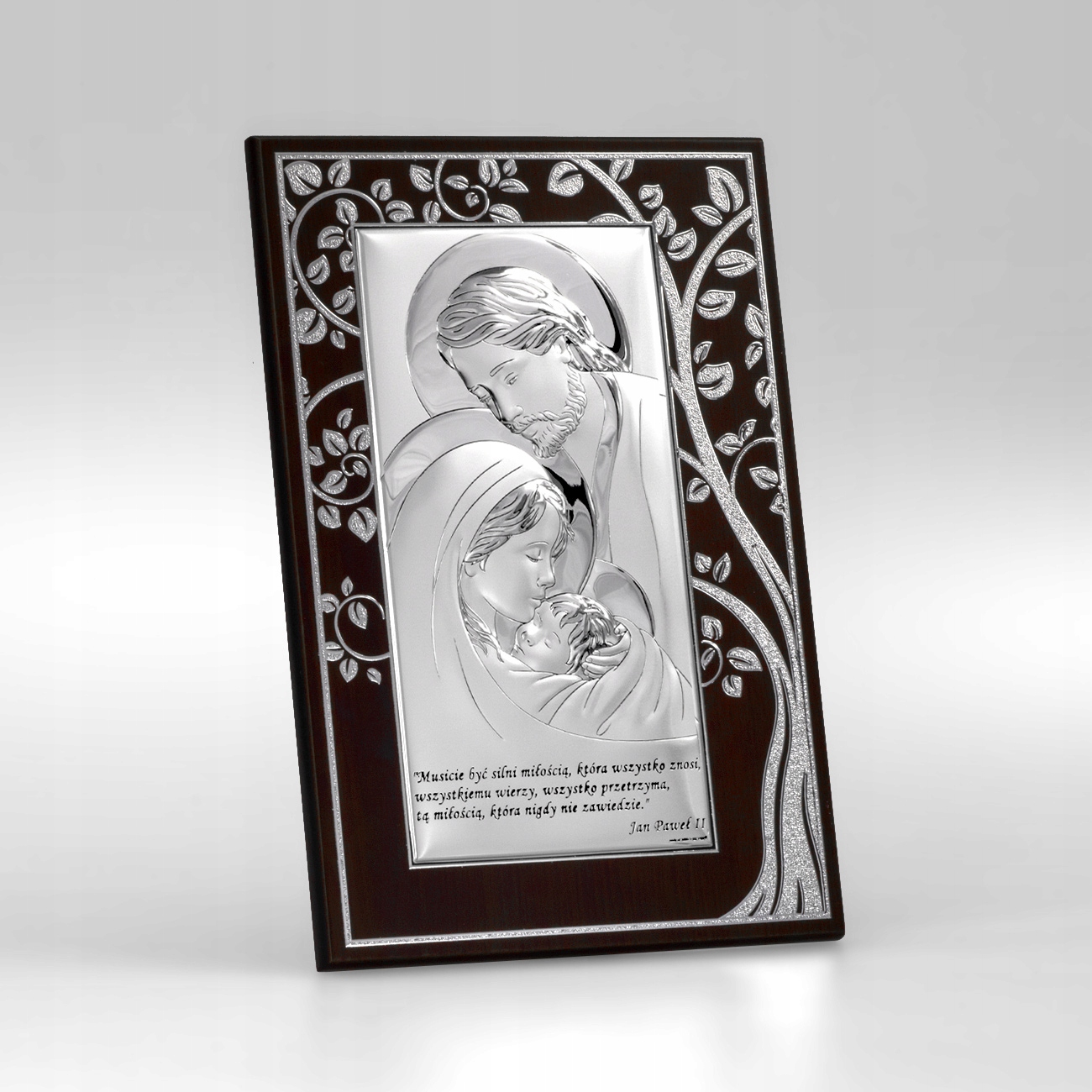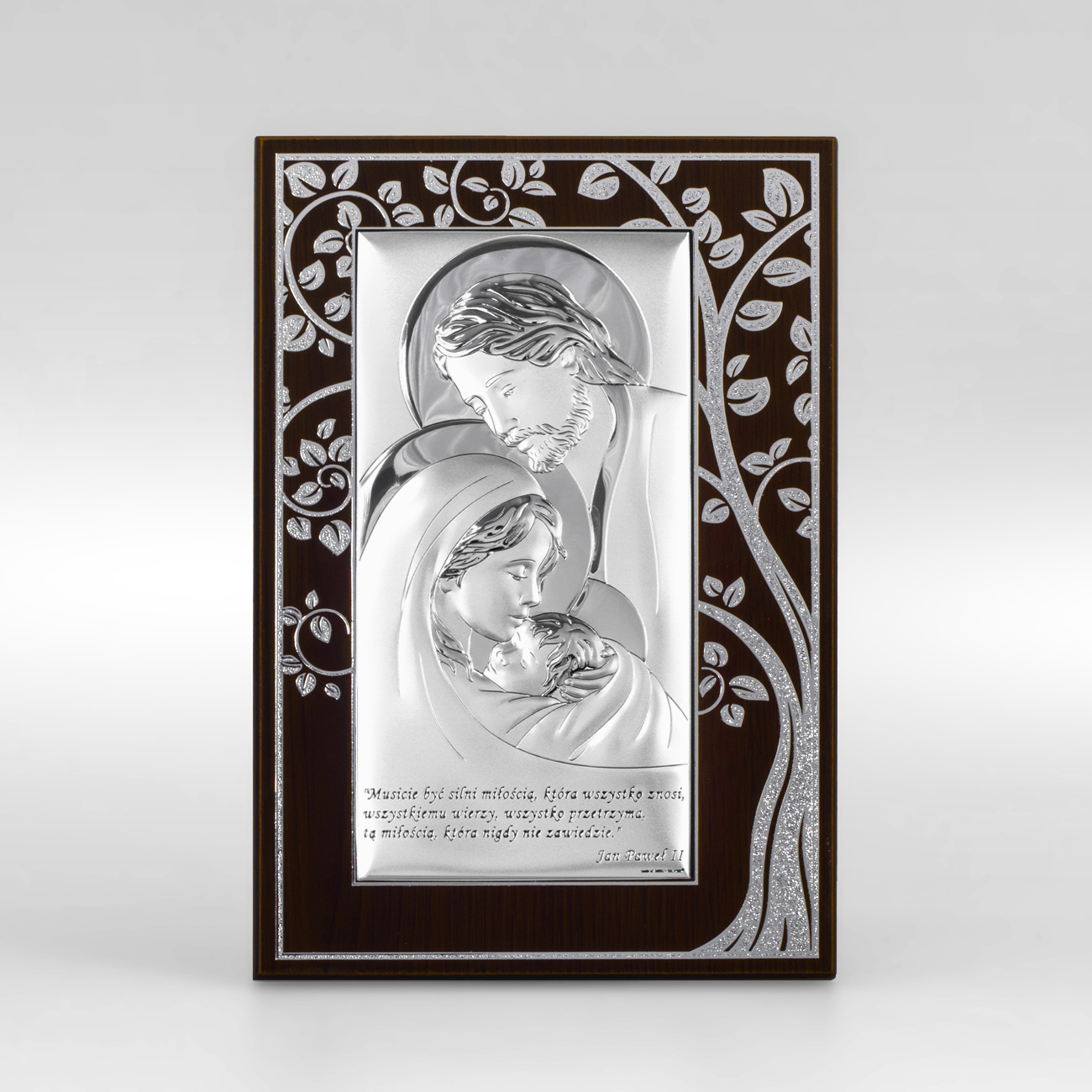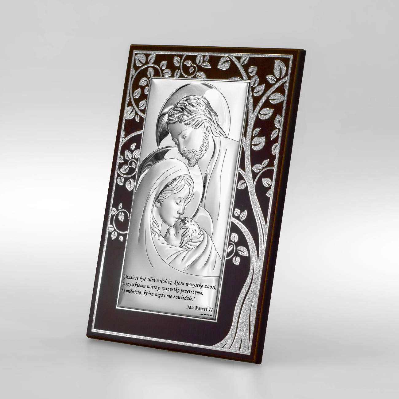Srebrny obraz Święta Rodzina z cytatem na Ślub