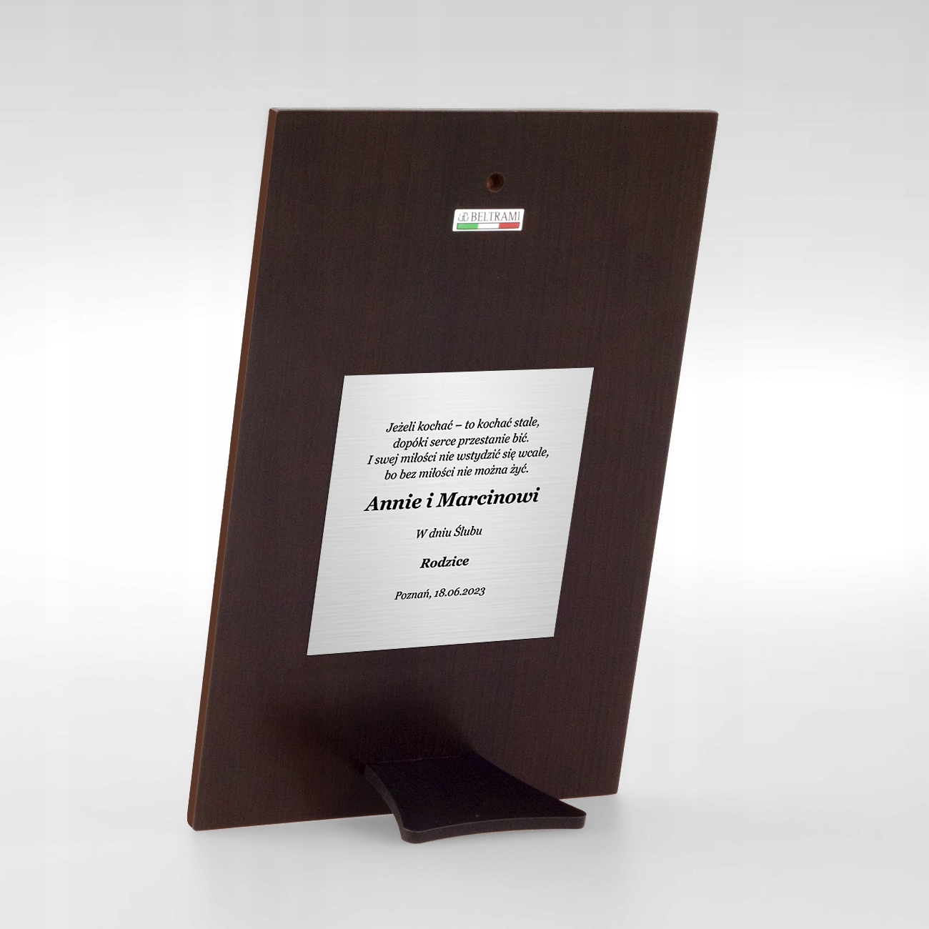 Посвященная табличка размещается на обратной стороне серебряной картины и выполнена в технике гравюры, что означает, что выбранный вами текст будет напечатан на тонкой алюминиевой пластине. Техника гравировки гарантирует привлекательный внешний вид тарелки и ее долговечность. И самое главное, он не мешает поверхности серебряной картины, поэтому не становится персонализированным товаром - поэтому вы можете вернуть его в течение 14 дней без объяснения причин.