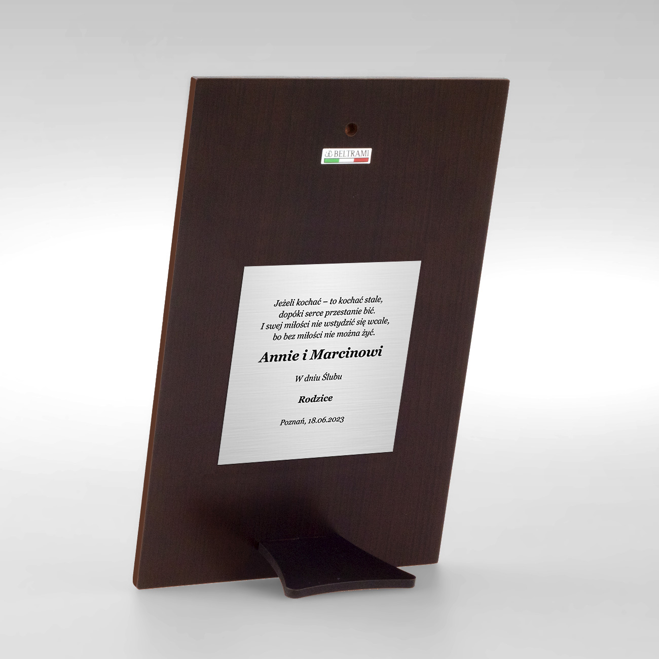 Посвященная табличка размещается на обратной стороне серебряной картины и выполнена в технике гравюры, то есть выбранный вами текст будет напечатан на тонкой алюминиевой пластине. Техника гравировки гарантирует привлекательный внешний вид тарелки и ее долговечность. И самое главное, он не мешает поверхности серебряной картины, поэтому не становится персонализированным товаром - поэтому вы можете вернуть его в течение 14 дней без объяснения причин.