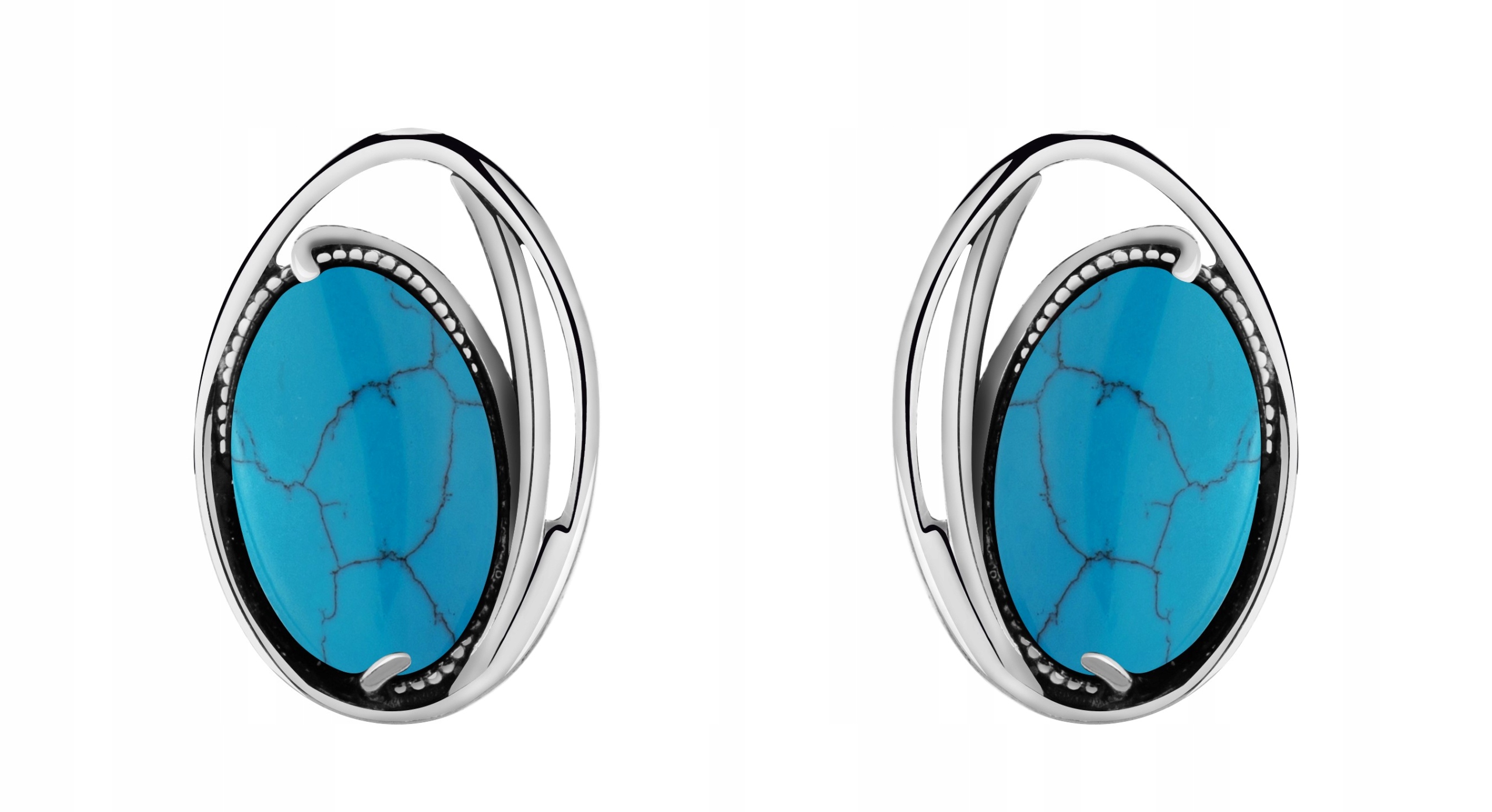 СРІБЛИСТІ ОВАЛЬНІ ЗАЖИМКИ З БІРЮЗОВИМ АНТИЧНИМ P925