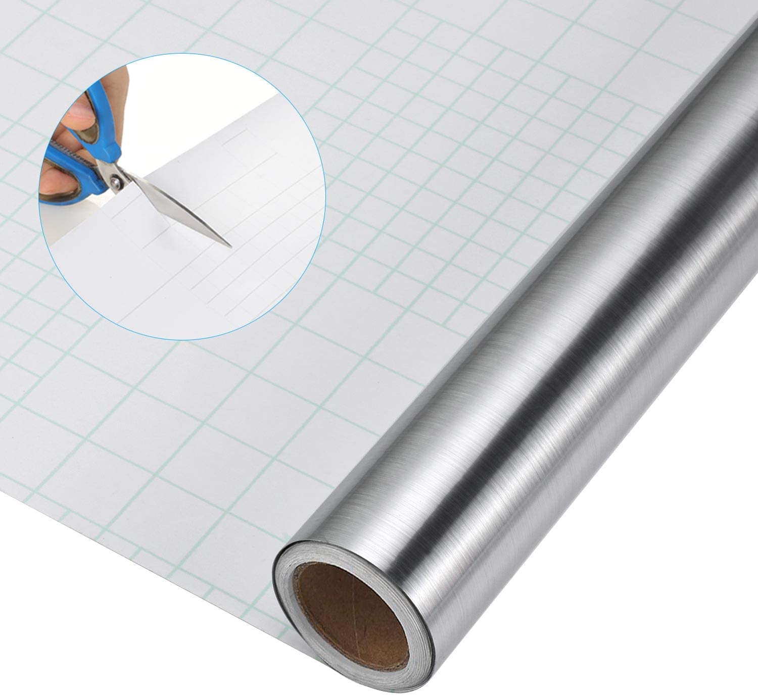 ⭐Серебряная контактная бумага из нержавеющей стали с металлической поверхностью Глянцевая бумага Самоклеящиеся съемные обои с отклеивающейся пленкой 60 x 500 см Водонепроницаемые
