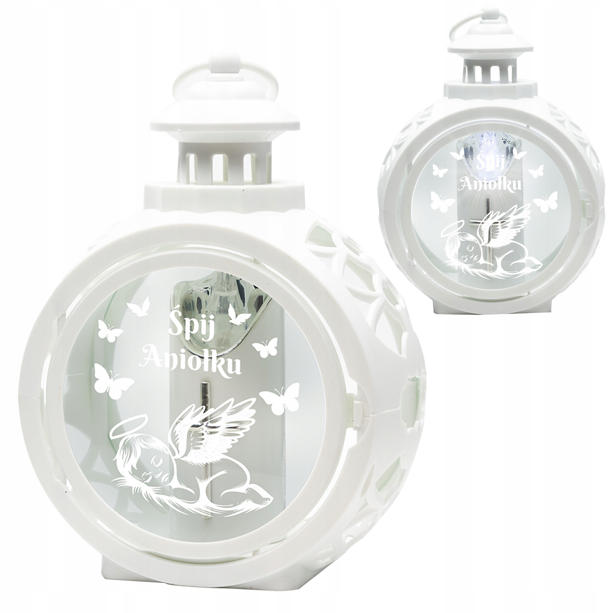 Кладбищенский фонарь - Круглый белый фонарь с гравировкой