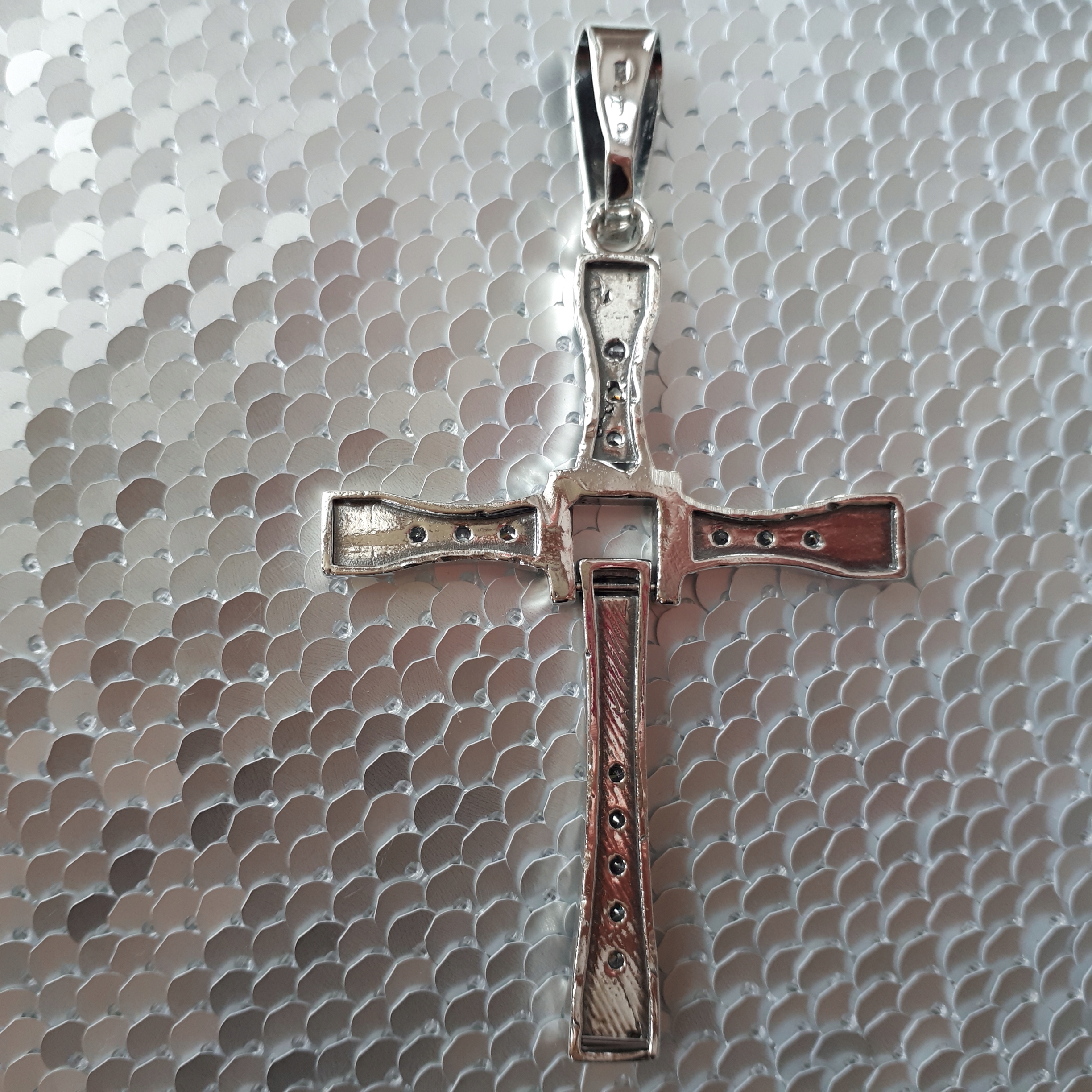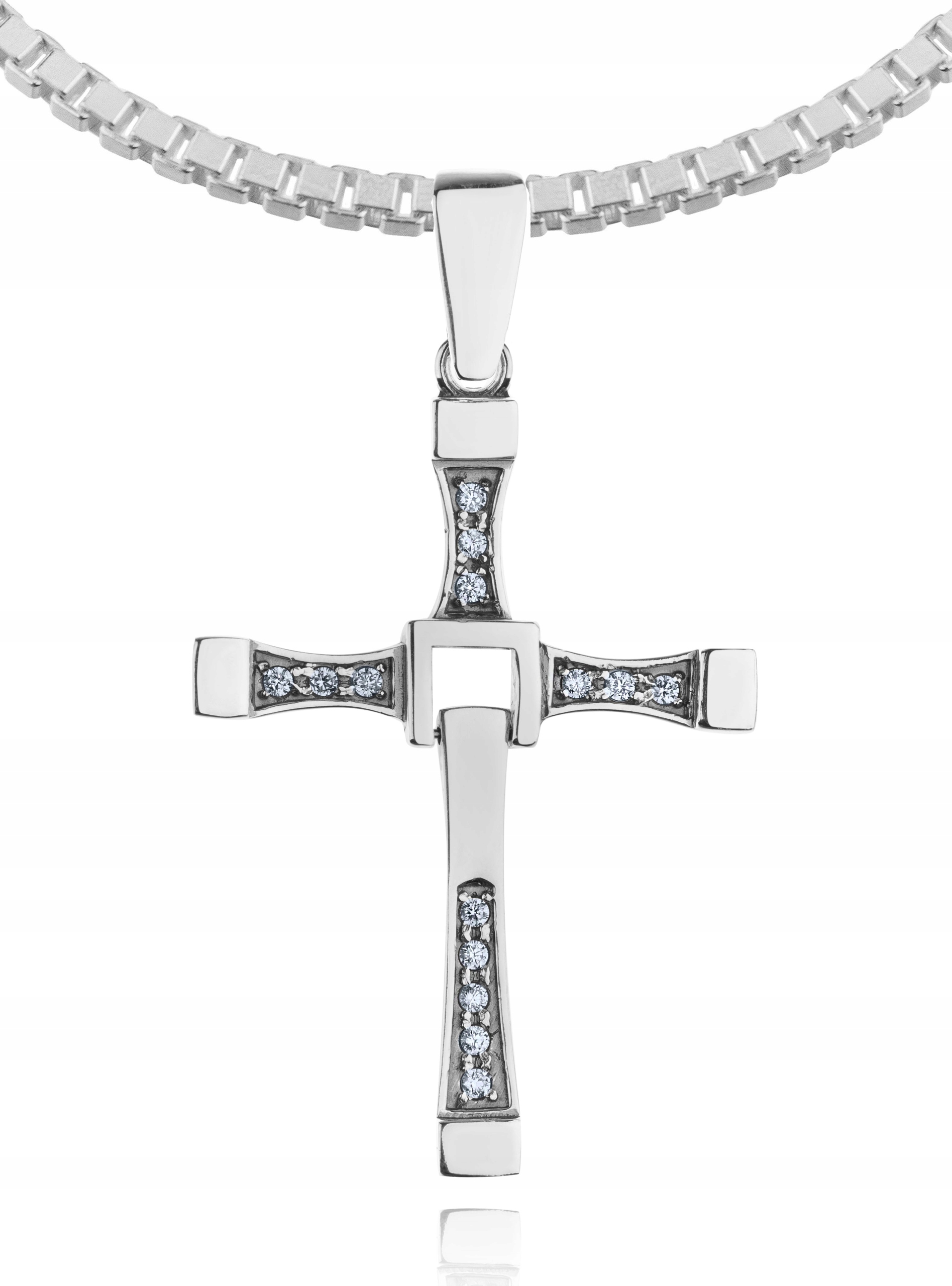Предметом предложения является красивый, серебряный, очень большой крест по образцу креста, который носил Вин Дизель в фильме «Форсаж» + массивная цепочка на щиколотке.