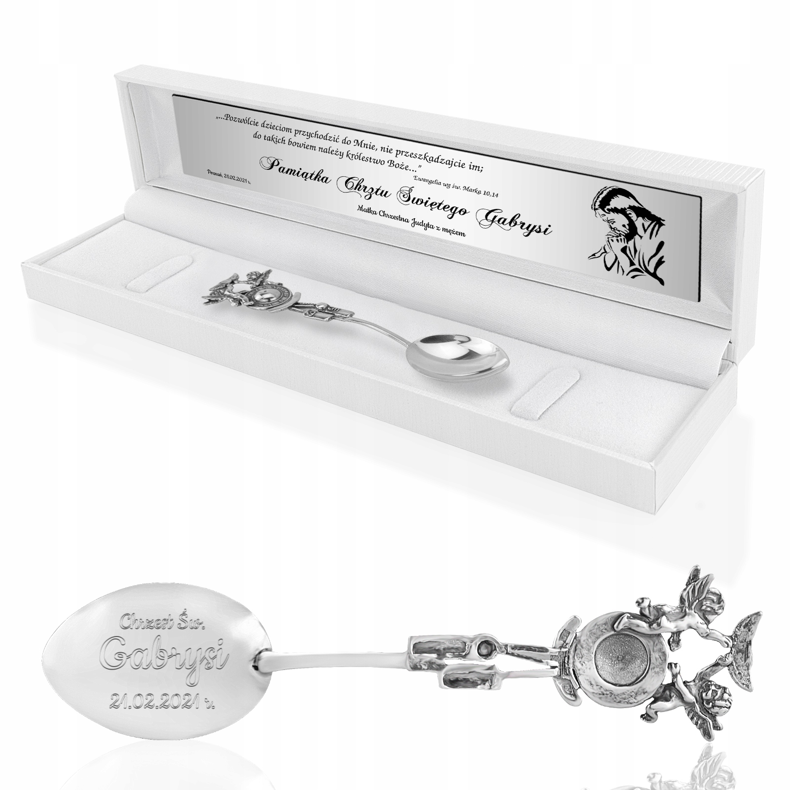 Ищете проверенный подарок на Святое Крещение? Сувениры из серебра уже много лет пользуются популярностью, так как сувениры этого особенного дня в жизни ребенка. Ложкас изображением ангелочков и голубя - чрезвычайно очаровательный подарок, который подойдет как девочке, так и мальчику. Индивидуальная гравировка придаст подарку особый характер и сделает его уникальным сувениром.
