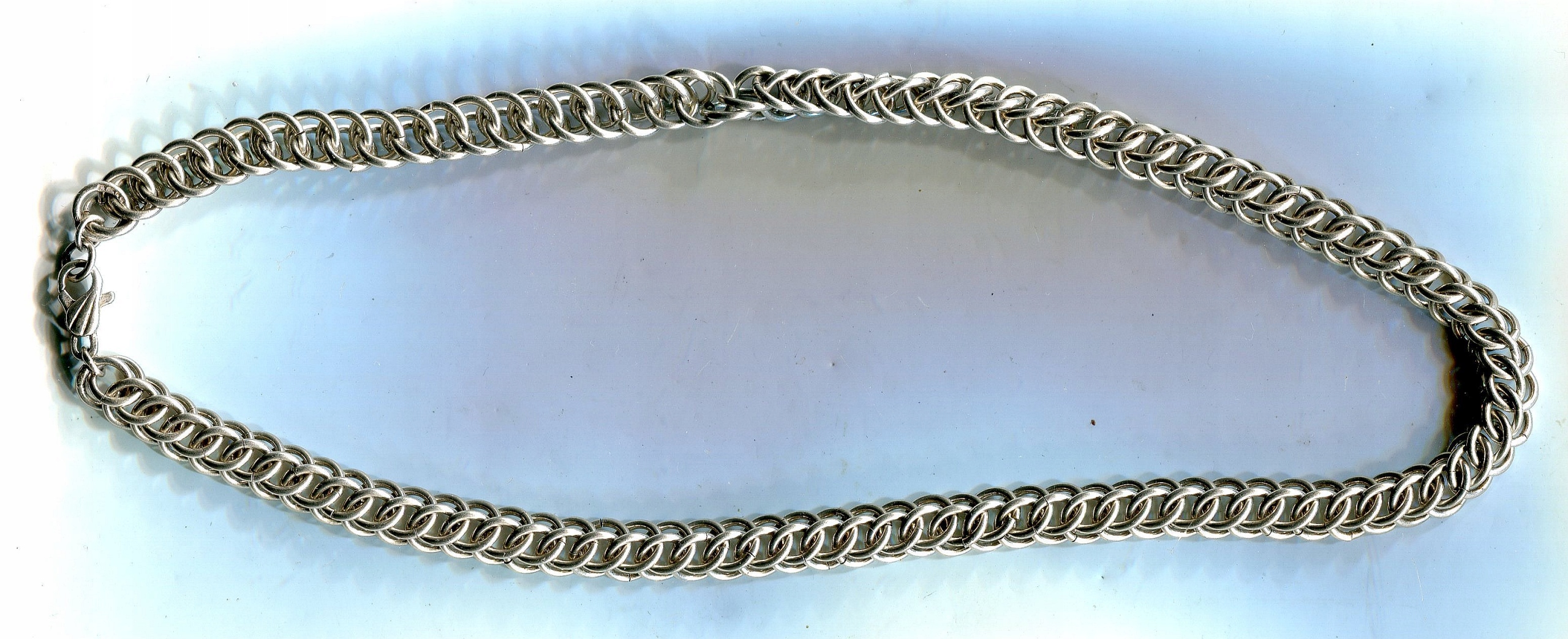- длина половины 20 см, распределена 41 см, ширина 0,8 см серебряный Pr. 925