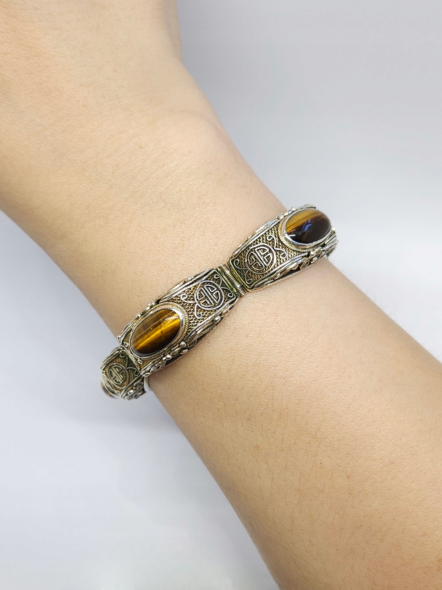Серебро золото. браслет так называемый филигранный КИТАЙСКИЙ, серебро 0.925, размер 17 см.