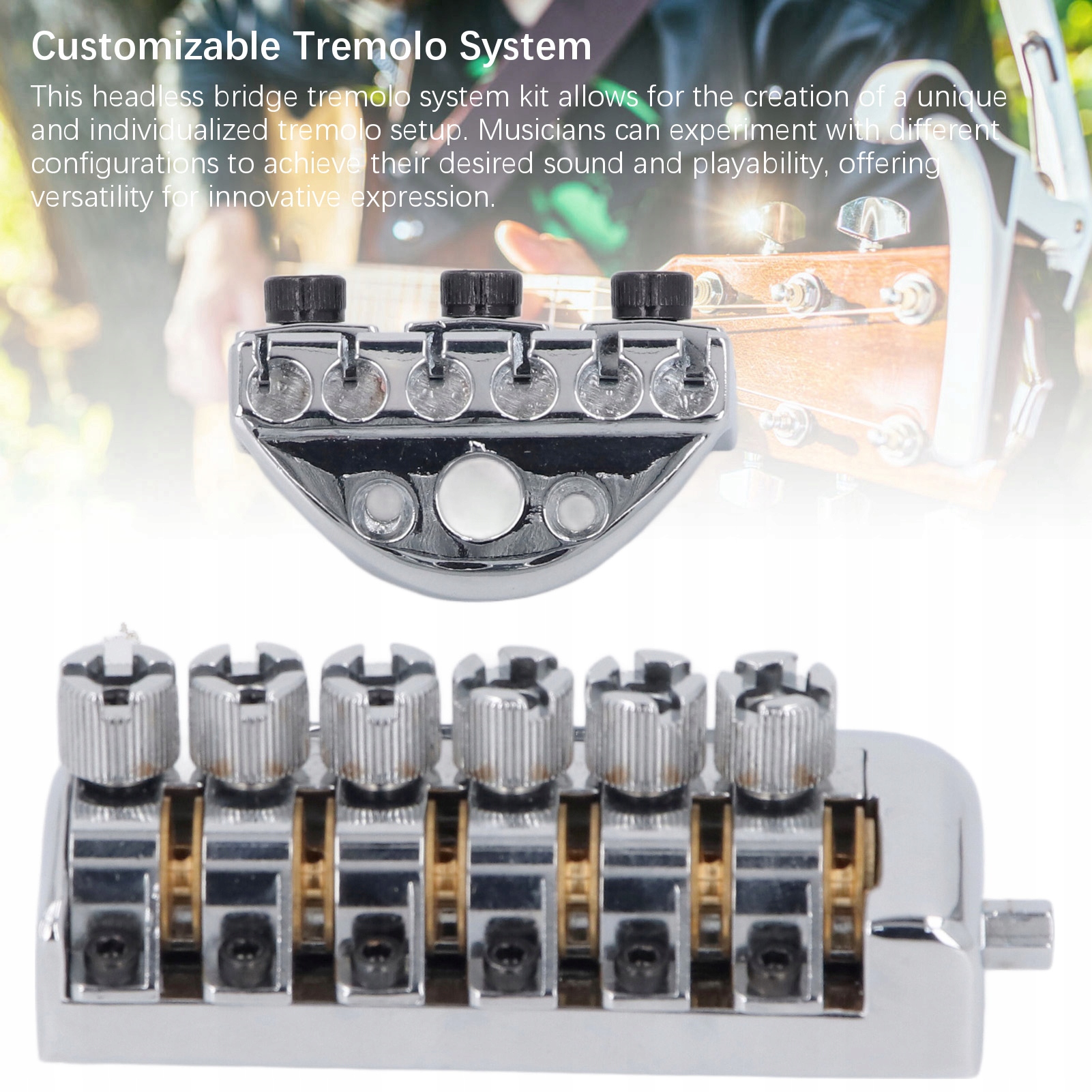 4. Настраиваемая система Tremolo: этот безголовный набор системы Tremolo позволяет создавать уникальную и индивидуальную конфигурацию Tremolo. Музыканты могут экспериментировать с различными конфигурациями для достижения желаемого звука и взаимодействия, предлагая универсальность инновационного выражения.
