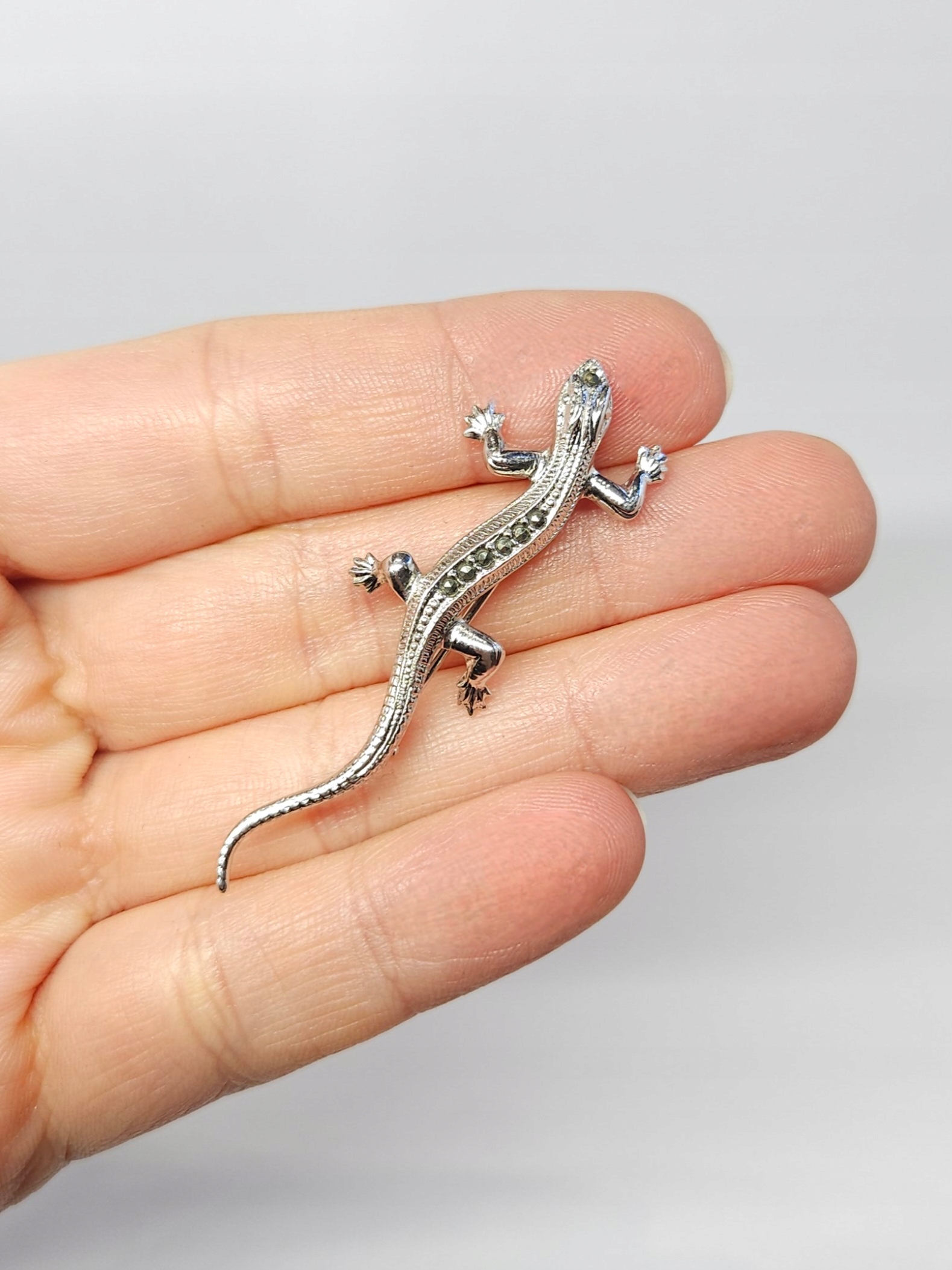 Серебряная брошь - Ящерица с марказитами, серебро 0.835