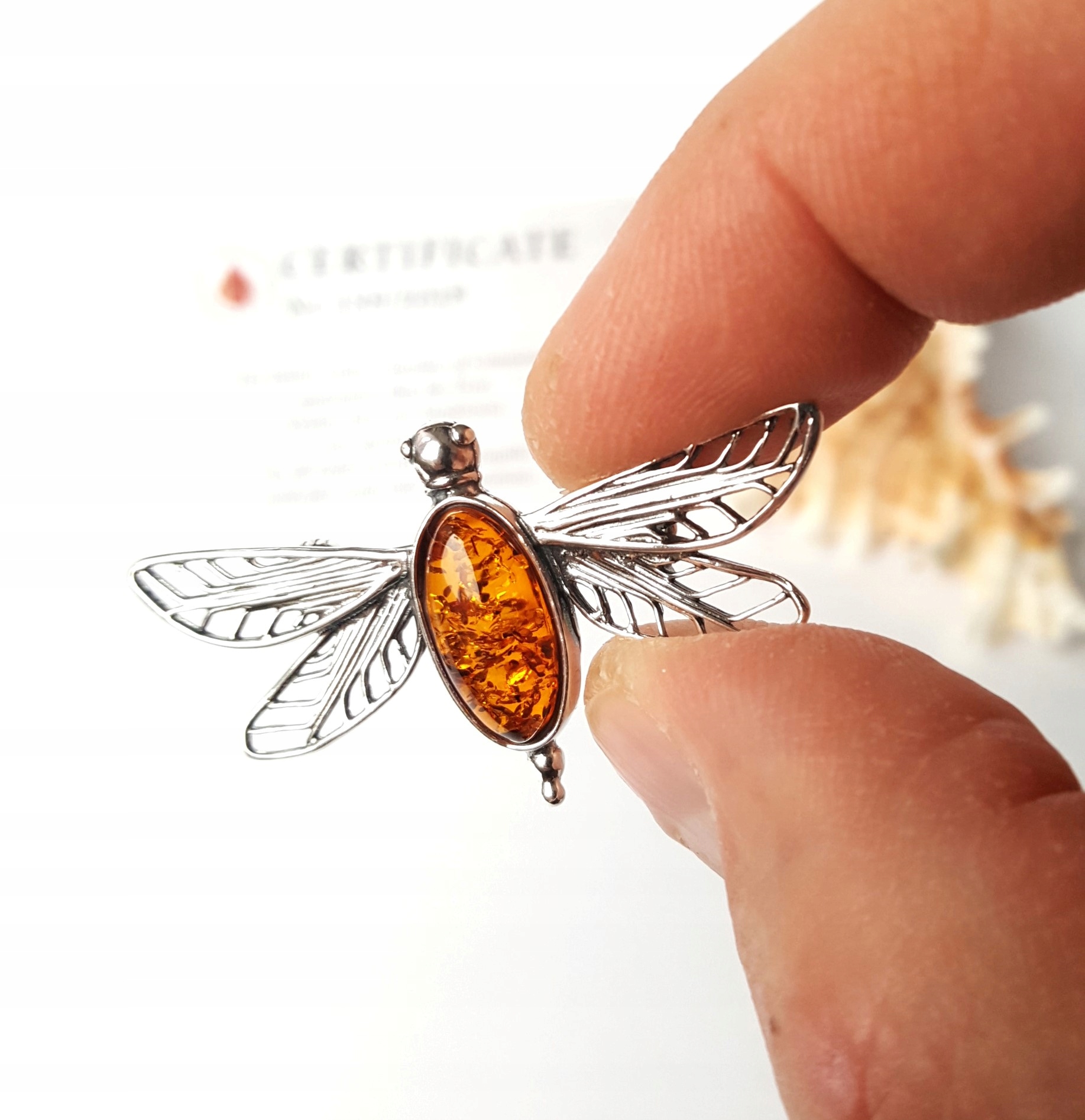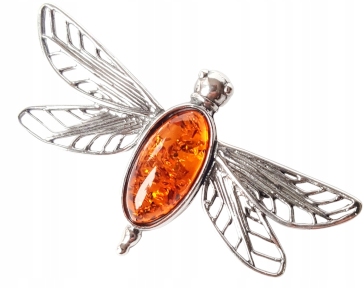 СТРЕКОЗА - брошь< /h1>СЕРЕБРЯНАЯ БРОШЬ С ЯНТАРЕМ