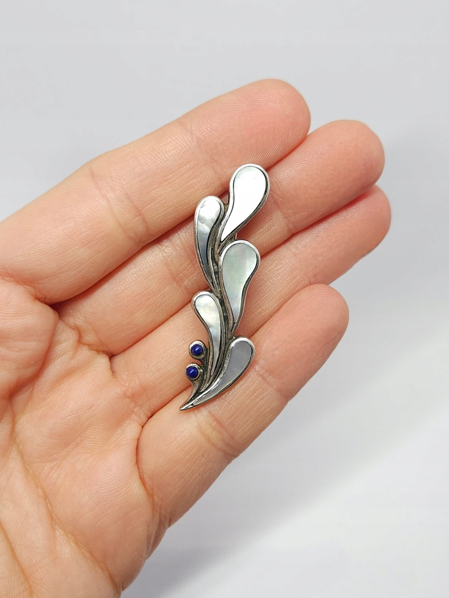 Серебряная брошь с перламутром и лазуритом, серебро 0.925