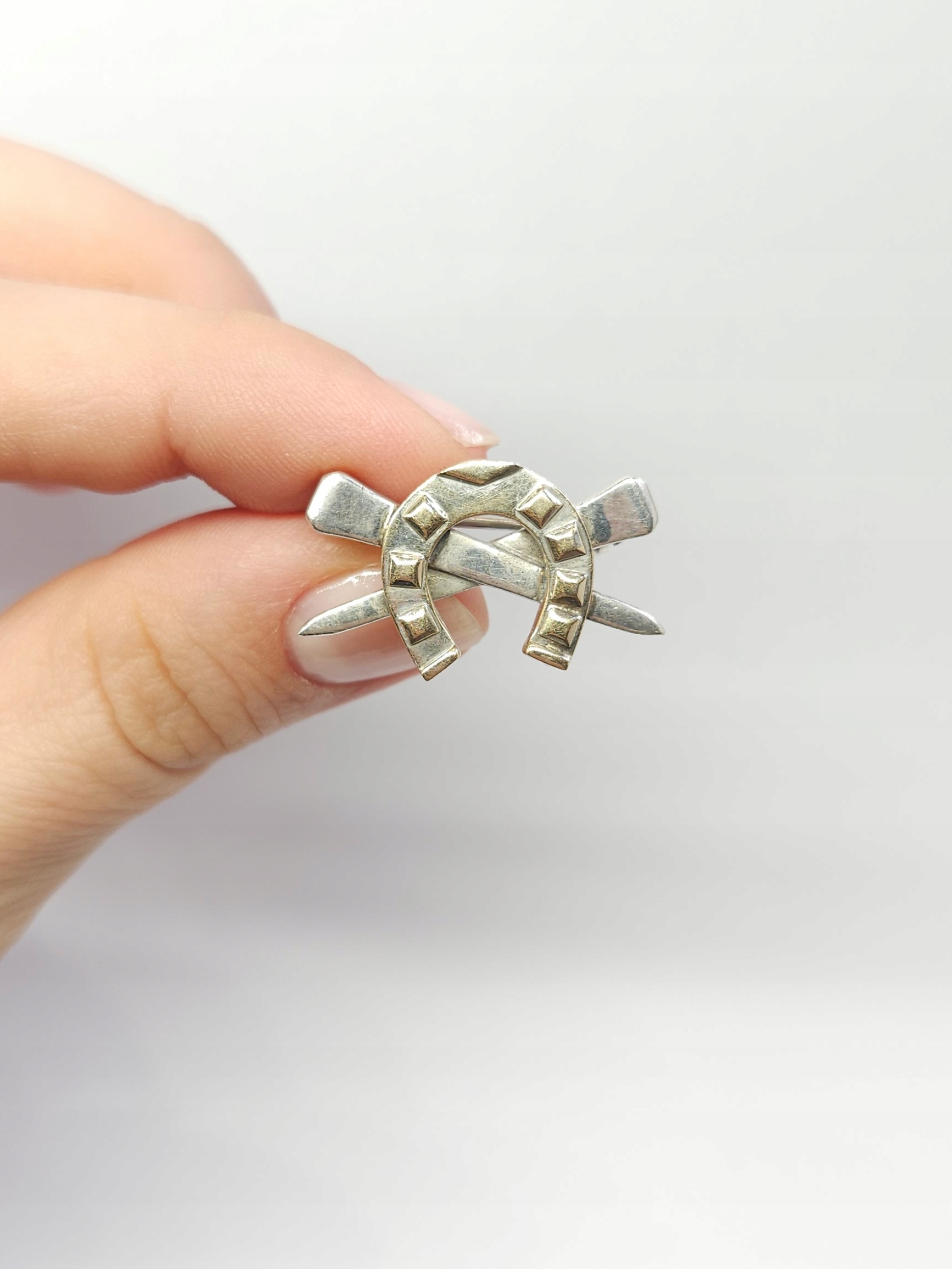 Серебряная брошь с подковой и обручами, серебро пр. 0,800 позолоченный хиппи