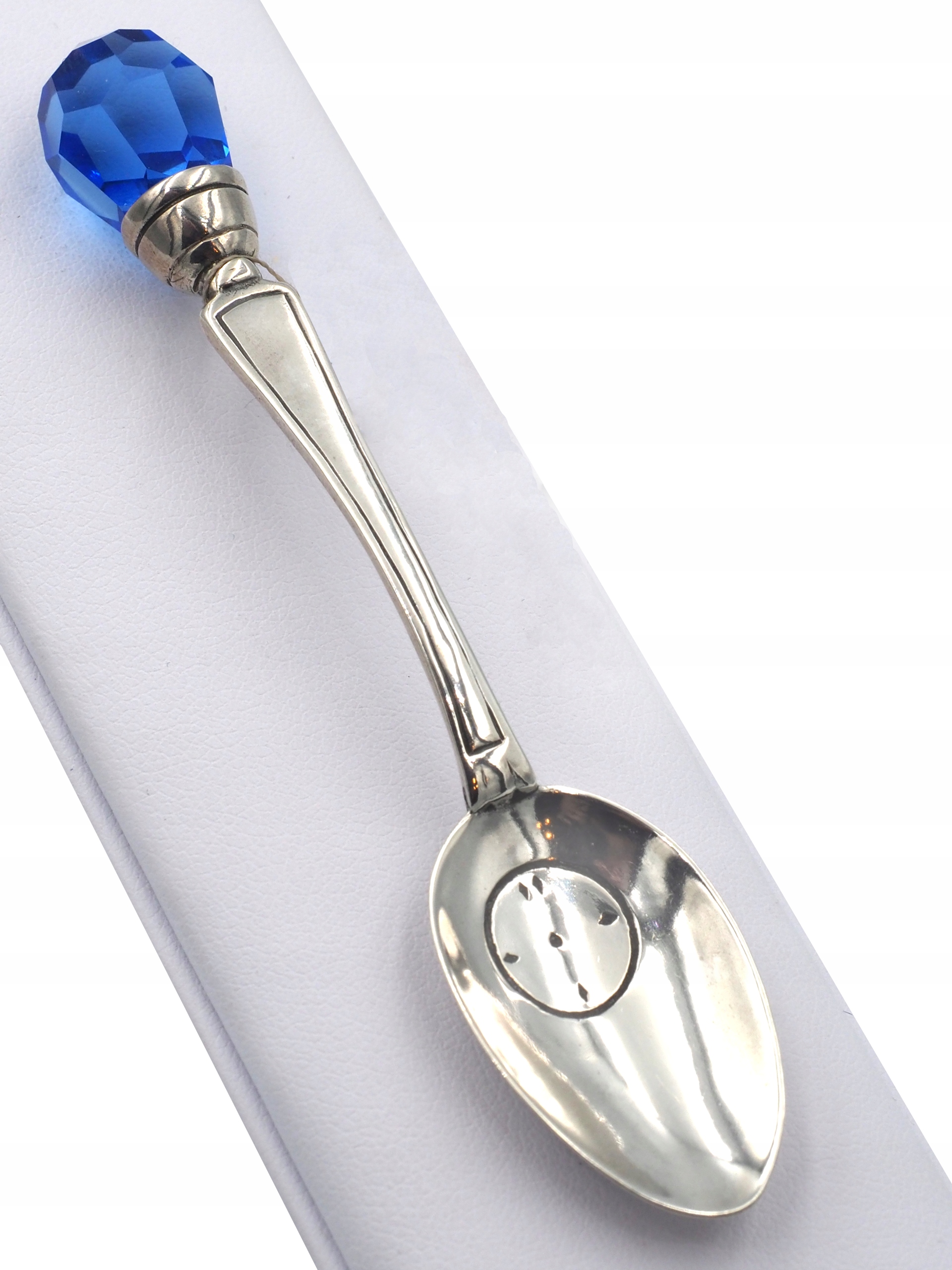 Серебряная ложка (830 мм) с синим кристаллом Сваровски.Гравировка самостоятельно.