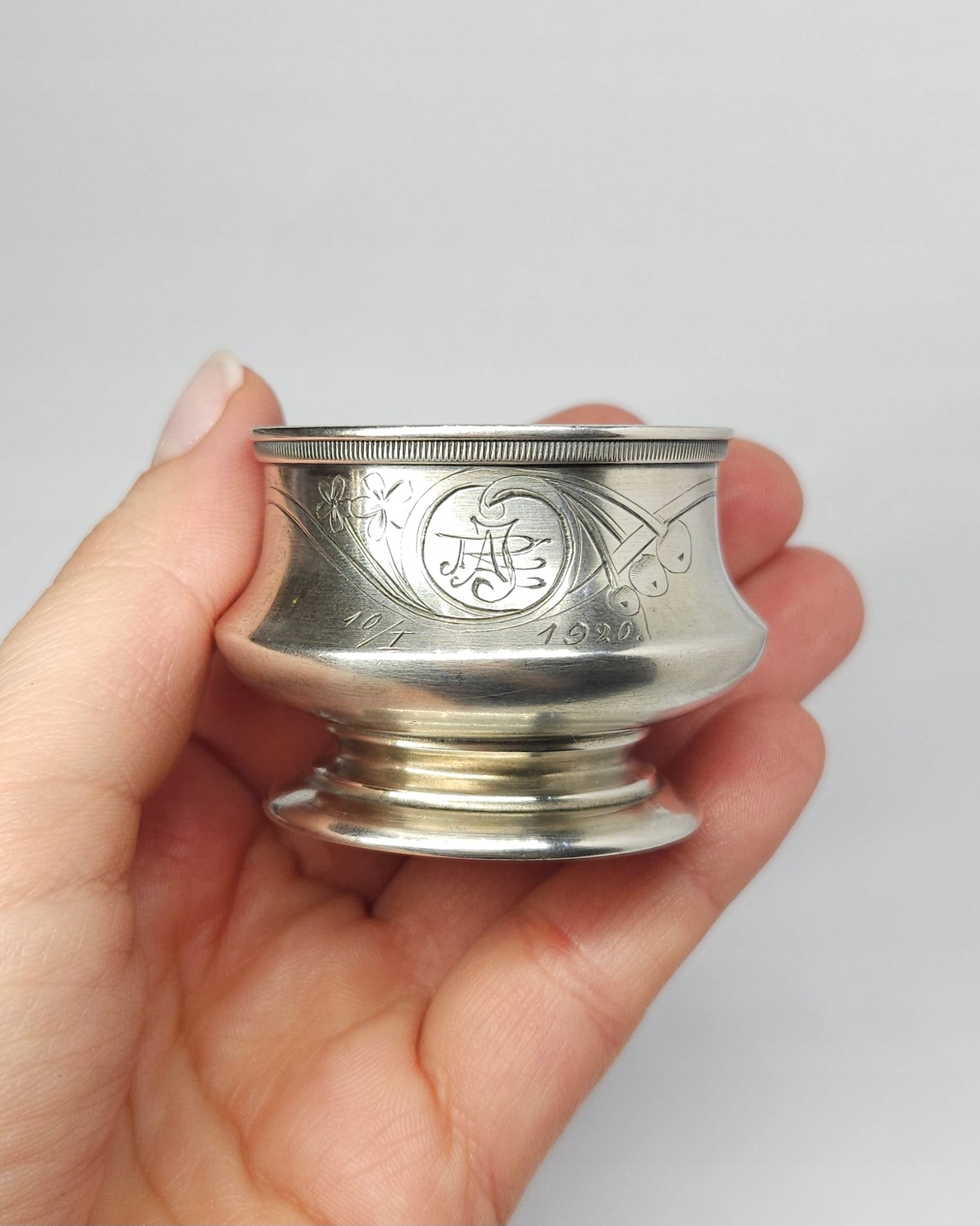 Серебряная чаша специя - гравюра 1920 Бог, благослови, серебряный пиар. 84