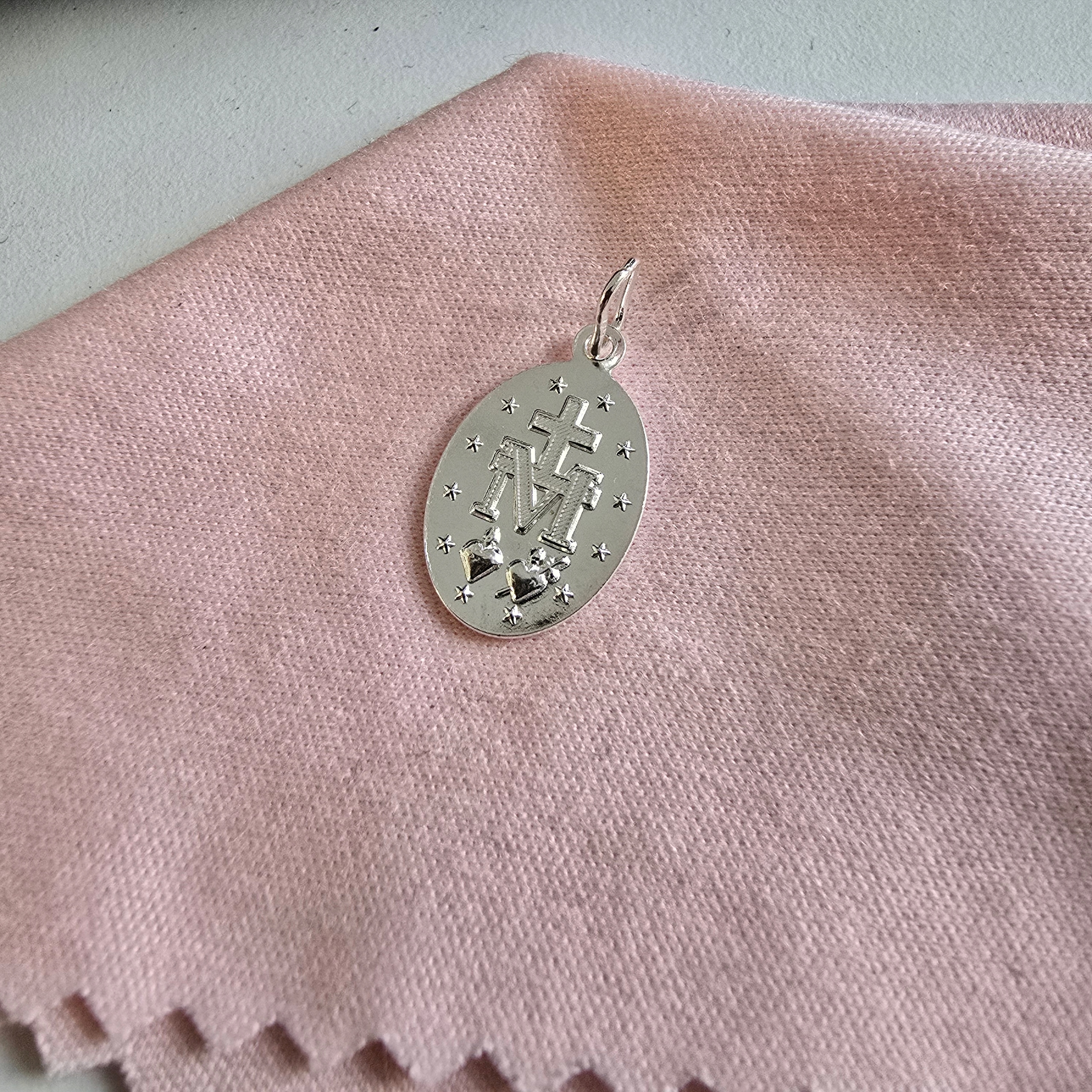 Серебро. Чудесная медаль - это уникальный объект, который сочетает в себе глубокую духовность с глубокой духовностью с ее тонкой красотой. На своей поверхности выгравированы слова на английском языке: « о Марии, задуманной без греха, молитесь за нас, которые обращаются к тебе », что в переводе в польские средства: «О Мария, задумана без греха, молитесь за нас, которые прибегают к вам ». Эта надпись не только добавляет уникальный характер к медаль, но и отражает глубокую веру и надежду в защите матери Божьей. Медаль сделана из серебра, что придает ему элегантный вид и делает его прочным объектом, который можно передавать от поколения в поколение. Это идеальный выбор для людей, ищущих объект религиозного значения, который в то же время является красивым и тонким украшением.