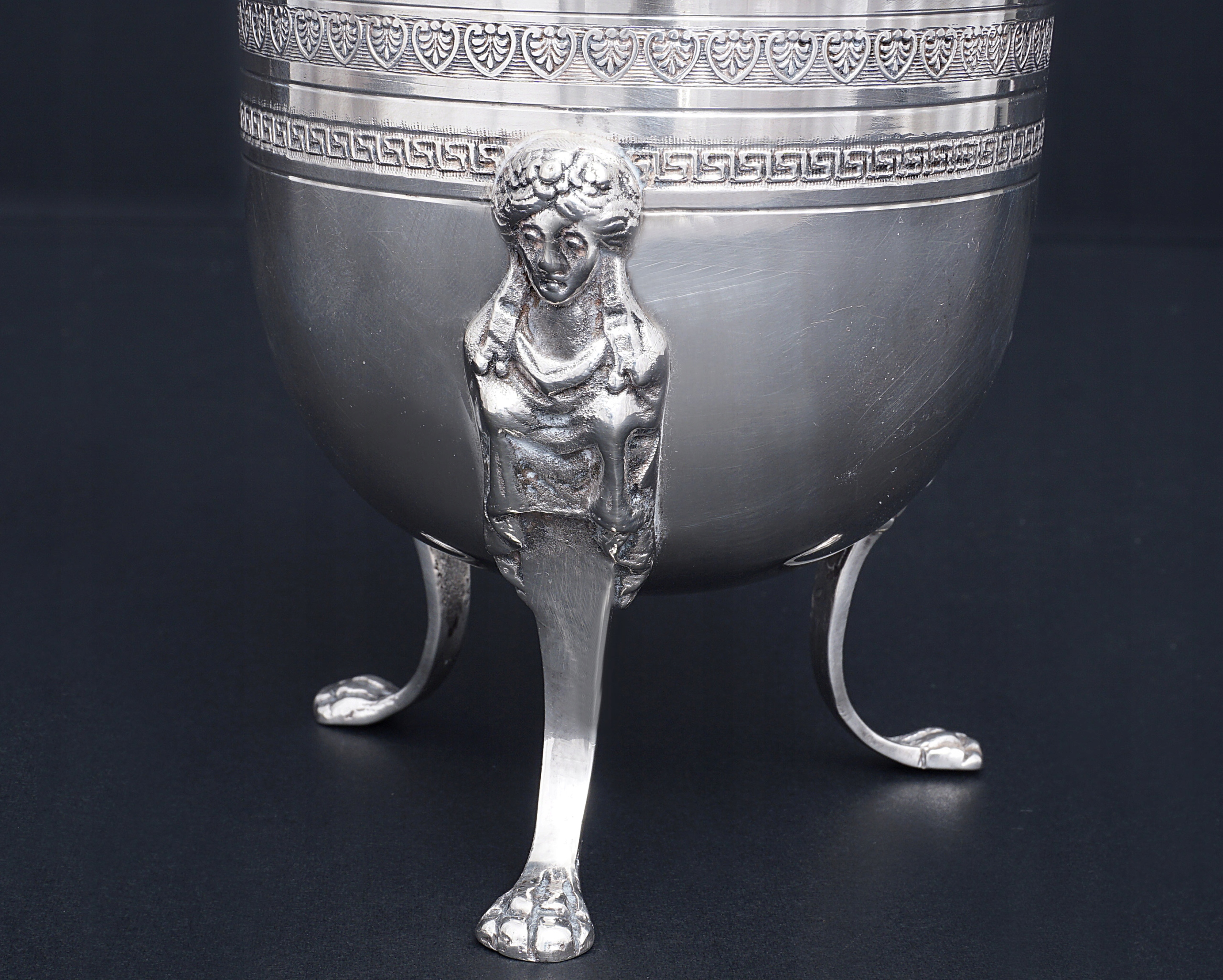 Сахарница с фигурной вершиной из серебра 800/1000 пробы.