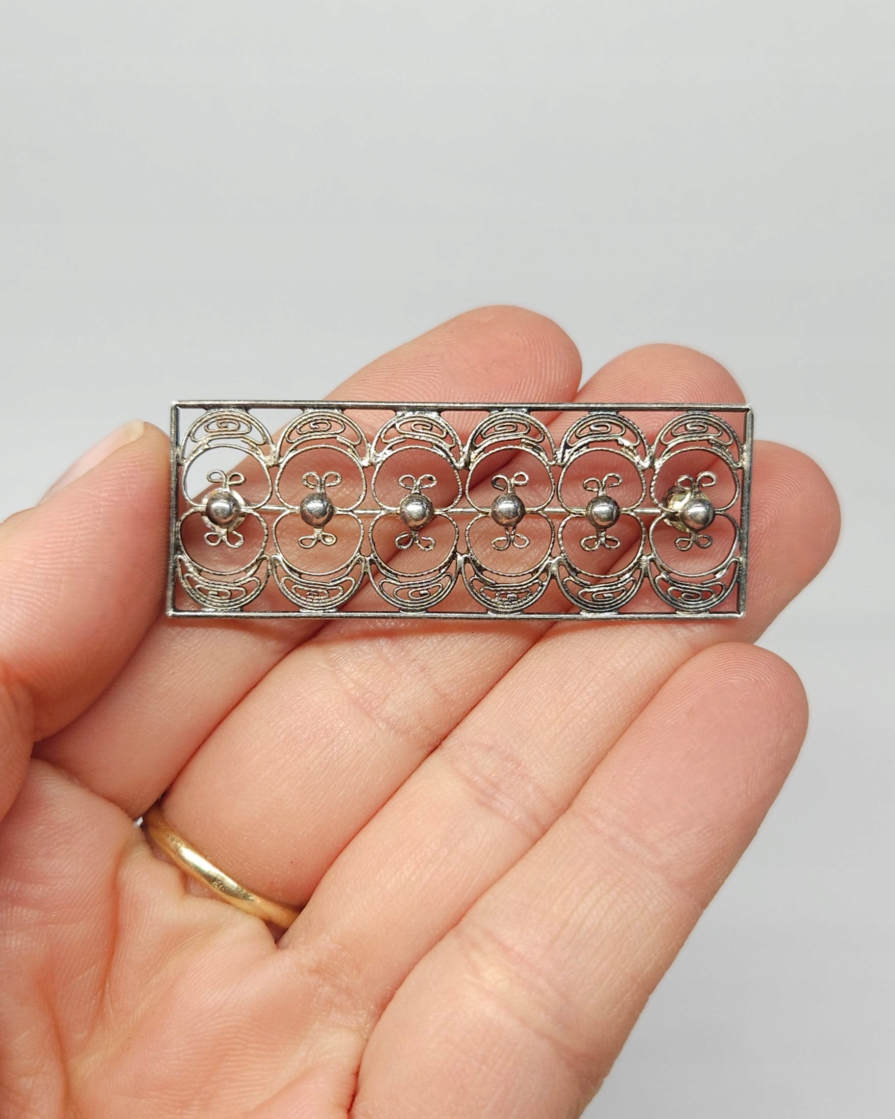 Серебряная открытая филигранная брошь, серебряный пиар. 0,835 Прямоугольные открытые работы