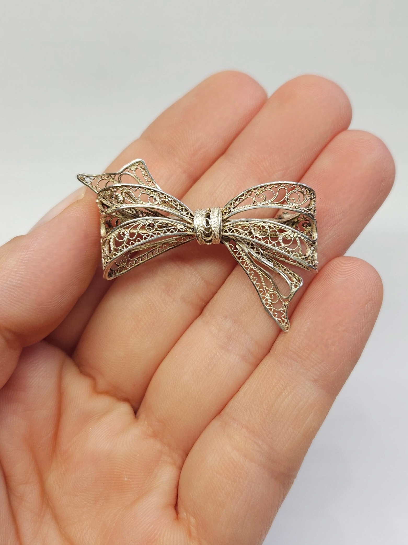 Серебряная филигранная брошь, серебро 0,900 лук, открытые изделия