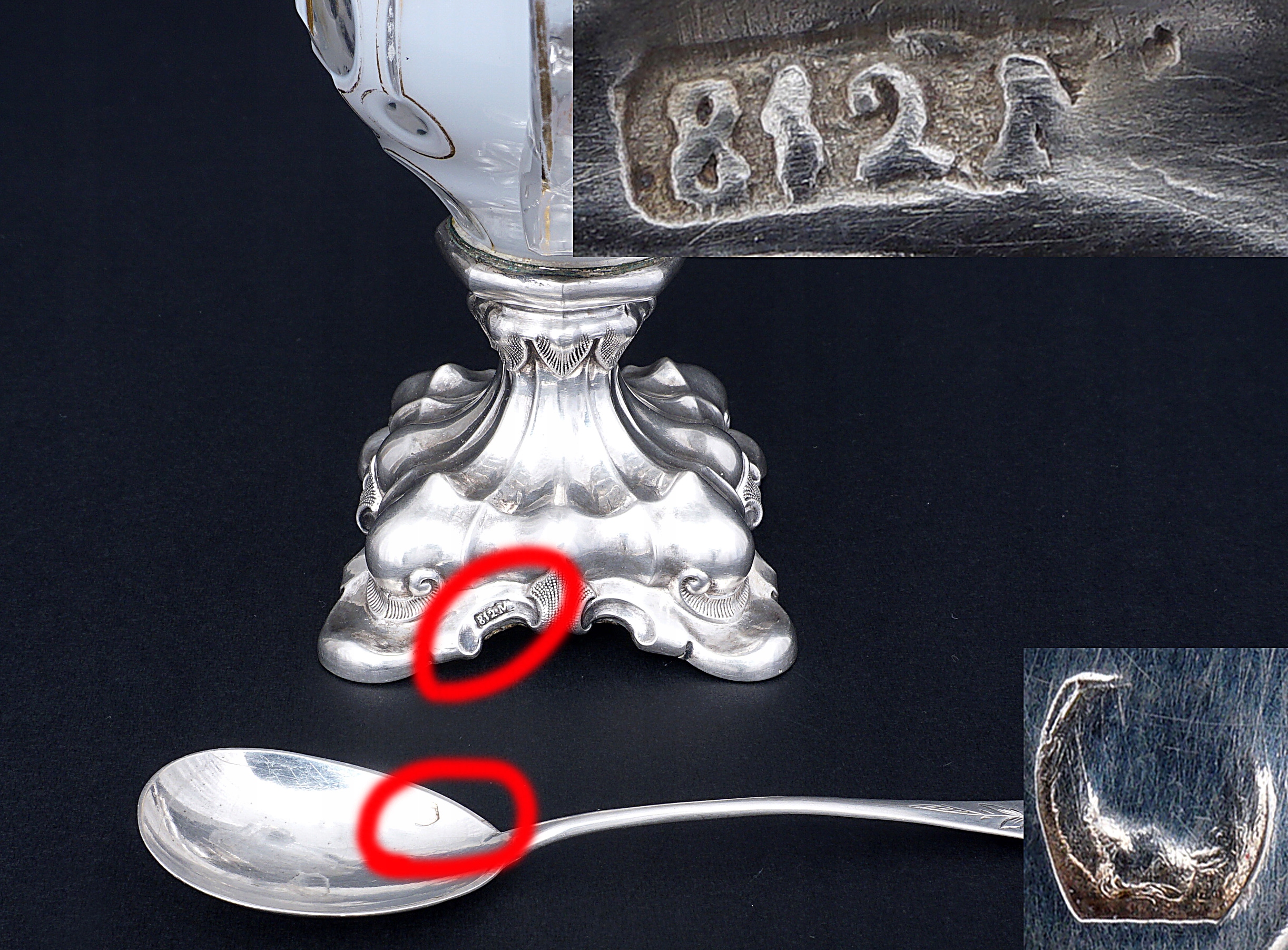 Горчица имеет клеймо 812, а ложки Минервы имеют номер 2.