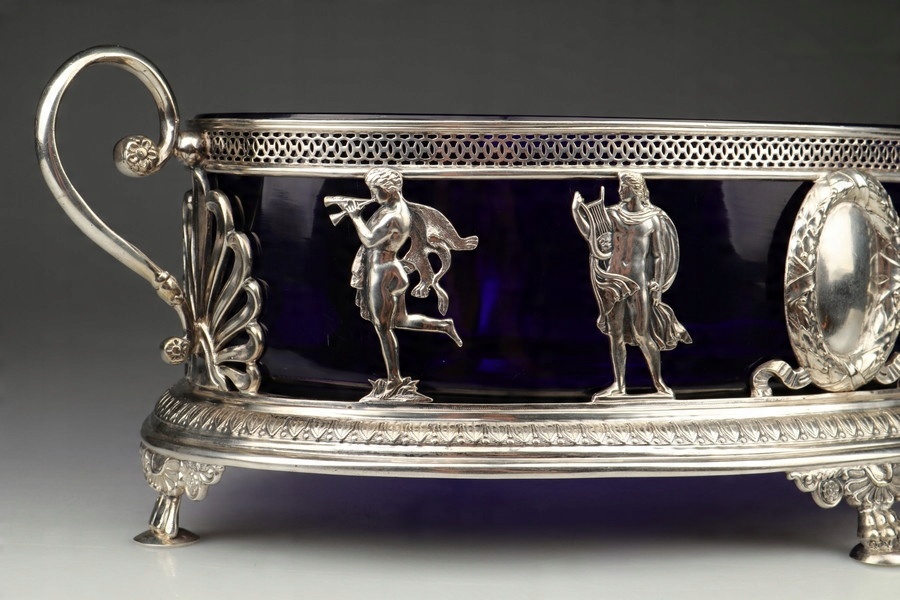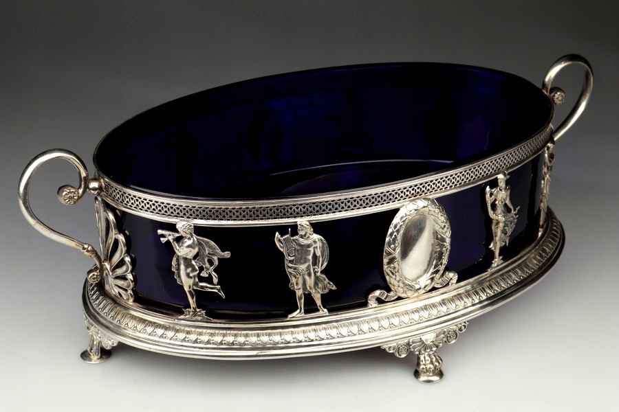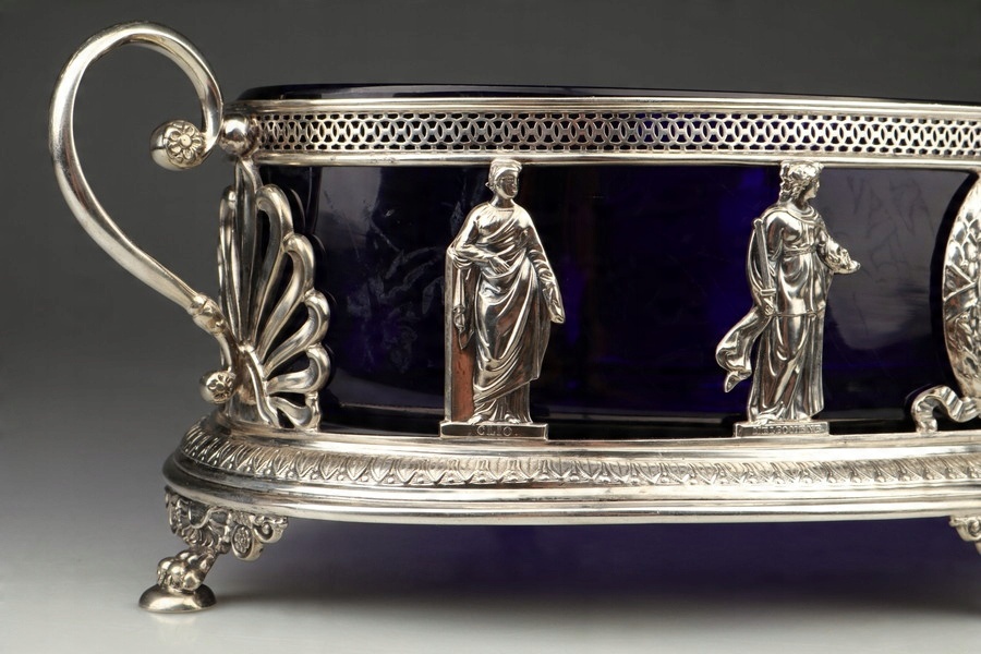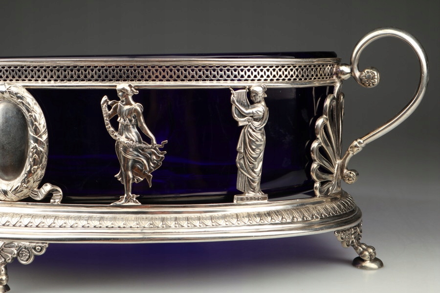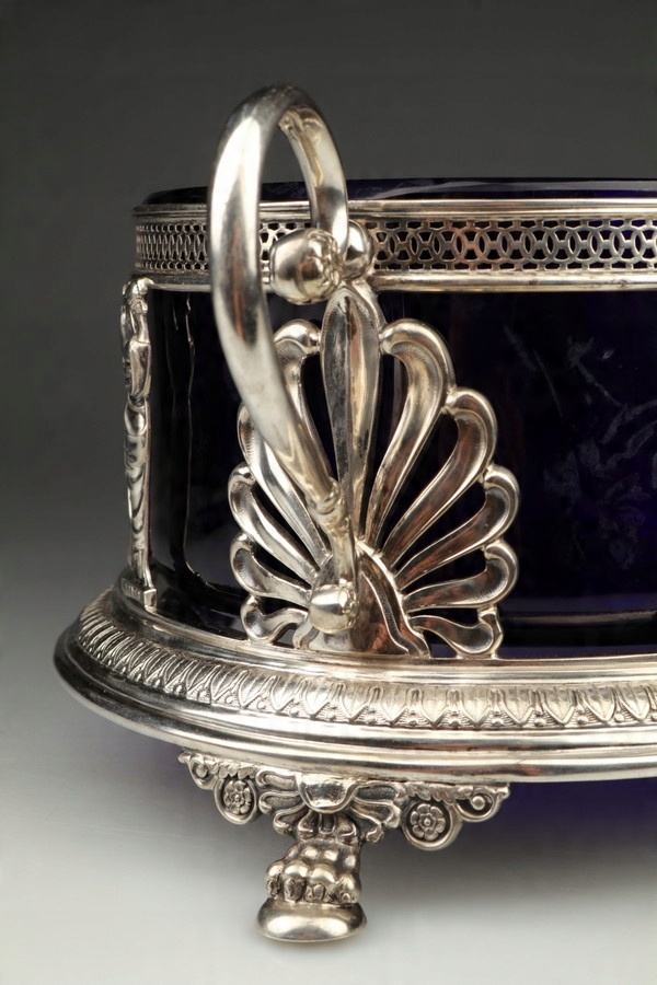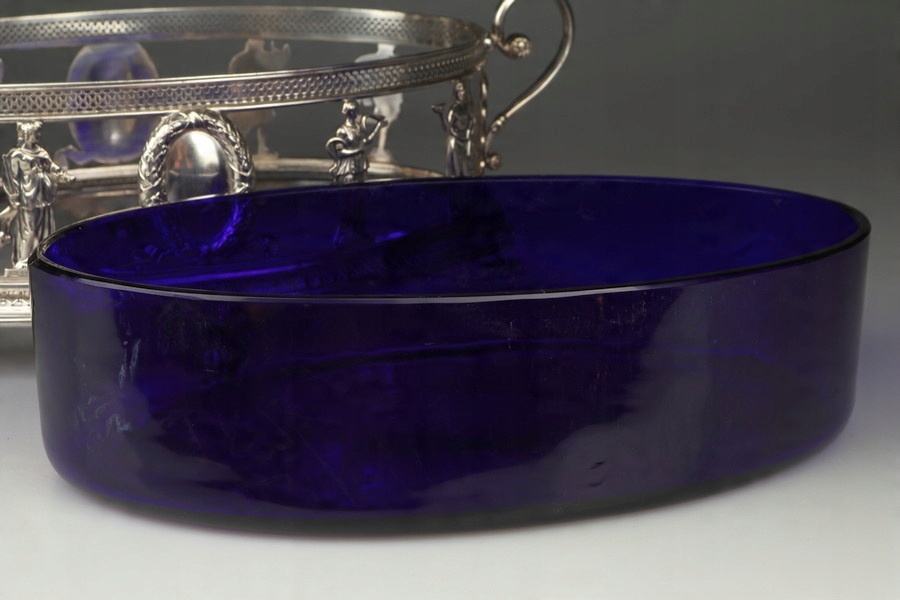 Срібна жардиньєрка - кобальтове скло