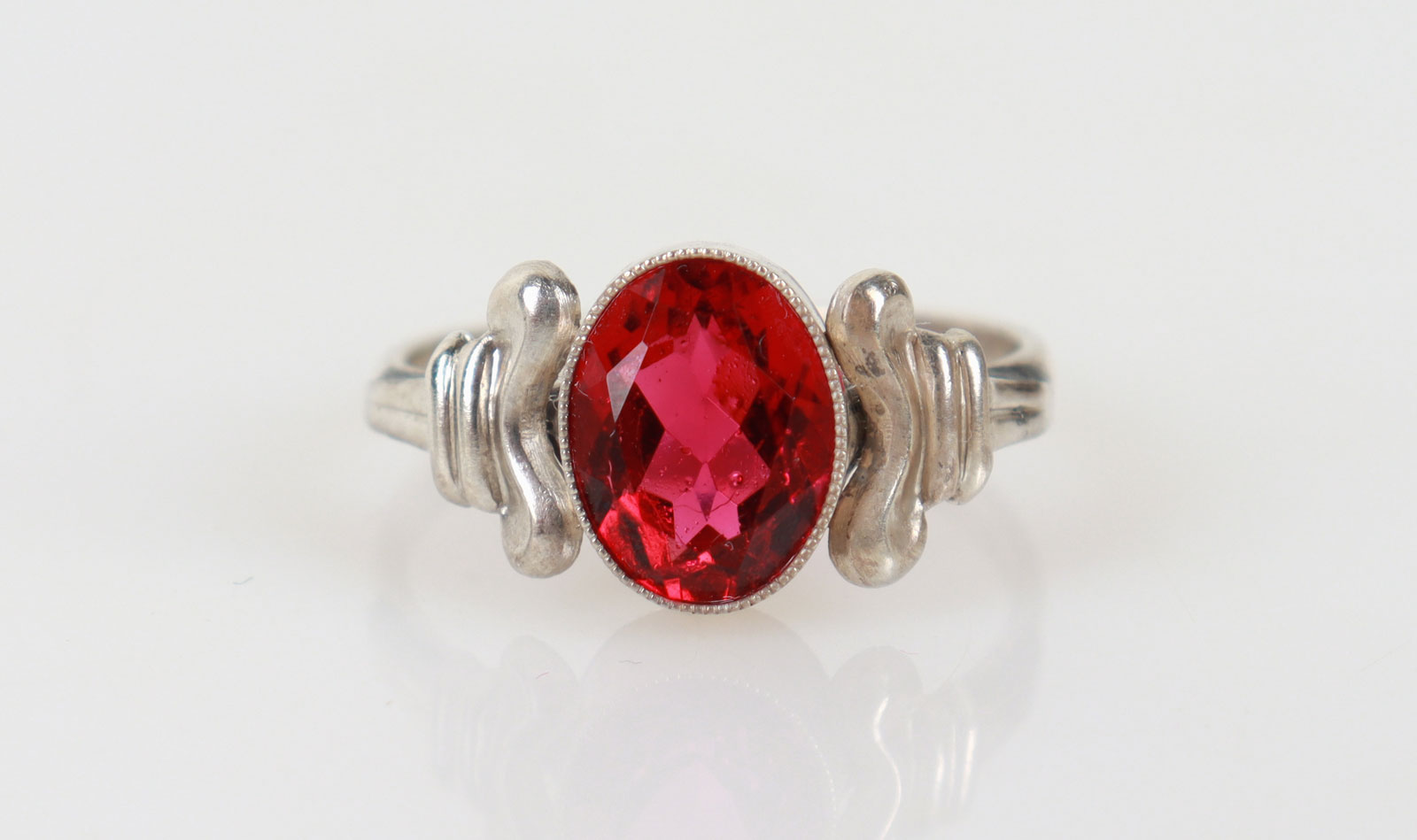 Серебряное кольцо с рубином, АРТ ДЕКО!