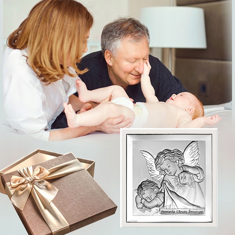 Священные картины являются важным элементом нашего предложения, поэтому мы рекомендуем вам подробно ознакомиться с предлагаемым ассортиментом, в том числе с серебряными святыми изображениями с посвящениями. Они прекрасно символизируют семейные ценности, которые чрезвычайно важны для каждого из нас. Представляем незабываемый подарок на крестины. Изысканная картина с изображением Ангела-Хранителя с личным посвящением запечатлит то, что мимолетно: радость этого особенного дня для всей семьи - Святого Крещения. Картина с изображением Ангела-Хранителя.Прекрасный подарок ко Святому Крещению! Безусловно незаменимыйКрещенский сувенир, подарок на Святое Крещение, символизирующий волшебную заботуАнгела-Хранителя.