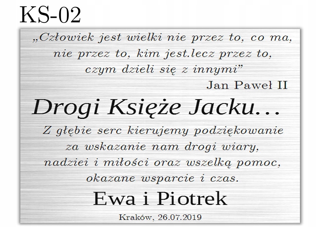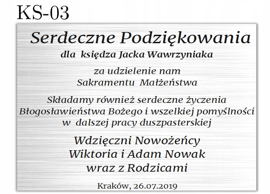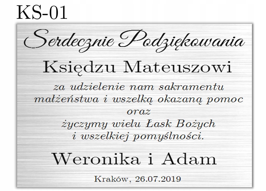 Гравировка выполнена с использованием лазерной техники. Больше всего мы уделяем внимание качеству изготовления. Благодаря использованию современных машин, посвящение очень точное и долговечное. Гравировка выполнена на ламинированных серебряных пластинах.