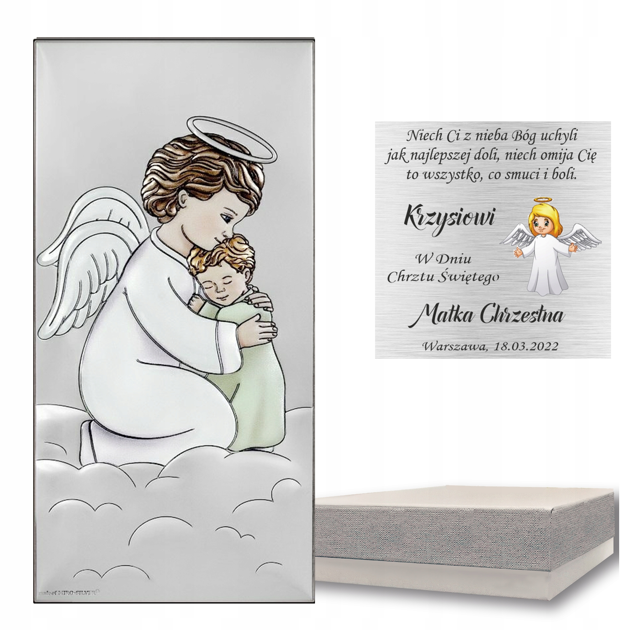 Священные изображения являются важным элементом нашего предложения, поэтому мы рекомендуем вам подробно ознакомиться с предлагаемым ассортиментом, в том числе с серебряными святыми образами с посвящениями. Они прекрасно символизируют семейные ценности, которые чрезвычайно важны для каждого из нас. Представляем незабываемый подарок на крестины. Изысканная картина с изображением Ангела-Хранителя с личным посвящением запечатлит то, что мимолетно: радость этого особенного дня для всей семьи - Святого Крещения. Картина с изображением Ангела-Хранителя.Прекрасный подарок ко Святому Крещению! Безусловно незаменимыйКрещенский сувенир, подарок на Святое Крещение, символизирующий волшебную заботуАнгела-Хранителя.