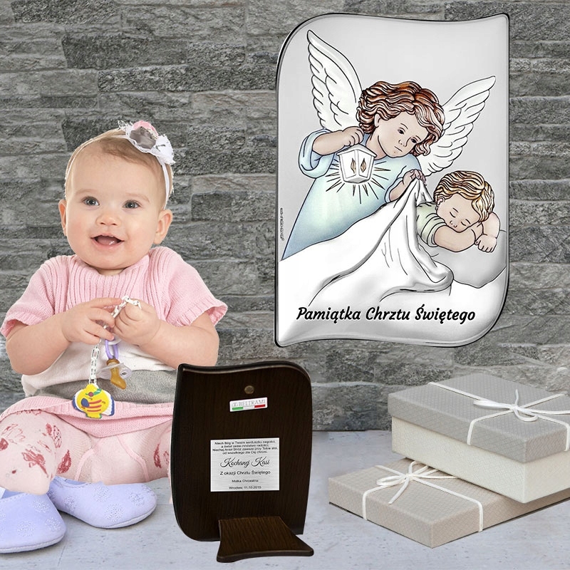 Священные картины являются важным элементом нашего предложения, поэтому мы рекомендуем вам подробно ознакомиться с предлагаемым ассортиментом, в том числе с серебряными святыми изображениями с посвящениями. Они прекрасно символизируют семейные ценности, которые чрезвычайно важны для каждого из нас. Представляем незабываемый подарок на крестины. Изысканная картина с изображением Ангела-Хранителя с личным посвящением запечатлит то, что мимолетно: радость этого особенного дня для всей семьи - Святого Крещения. Картина с изображением Ангела-Хранителя.Прекрасный подарок ко Святому Крещению! Безусловно незаменимыйКрещенский сувенир, подарок на Святое Крещение, символизирующий волшебную заботуАнгела-Хранителя.