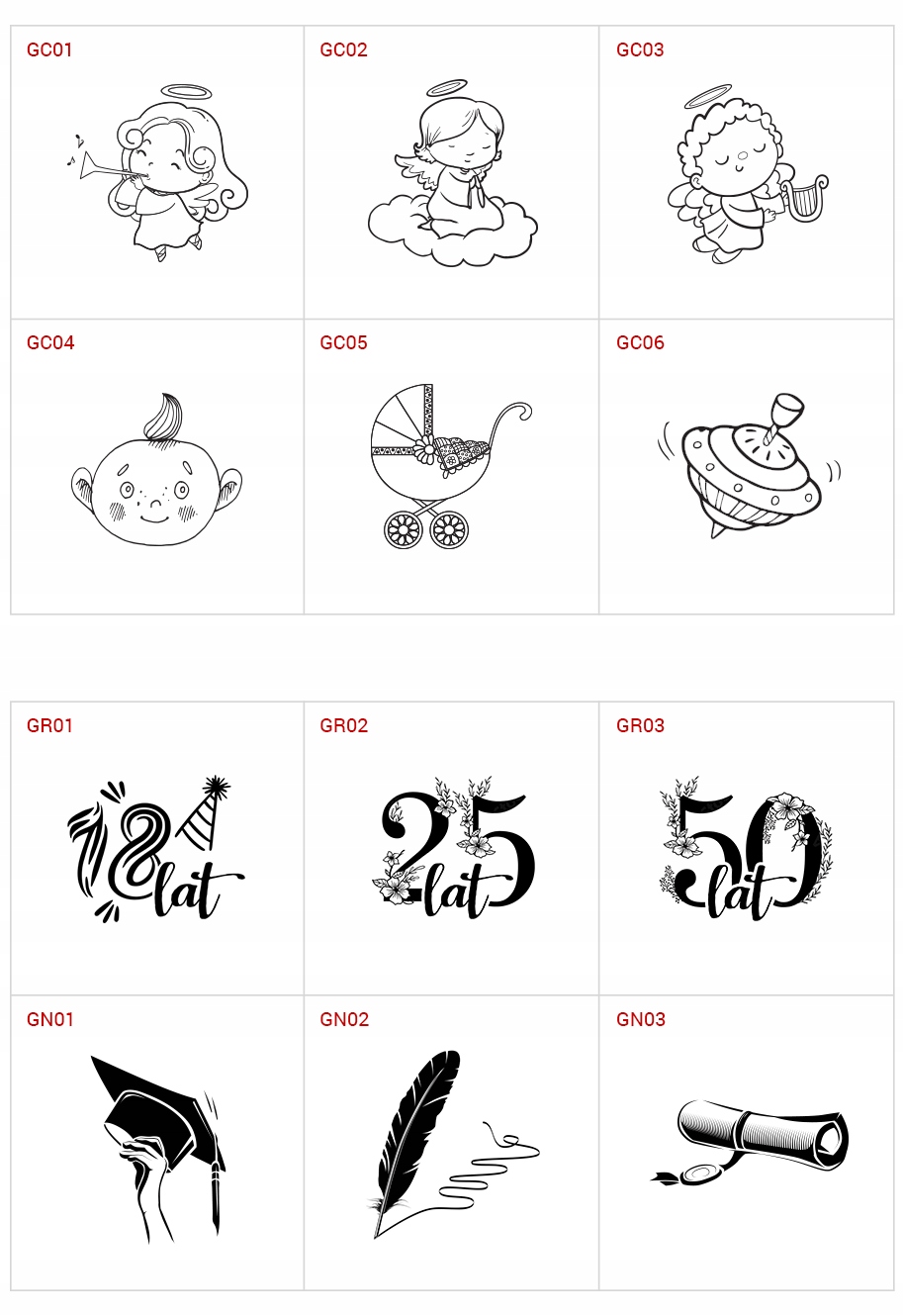 Вы можете выбрать один из шаблонов ниже, указав только выбранный номер и данные (подчеркнутые с красной линией), которые необходимо изменить, или вы можете отправить свой полный текст. Вы также можете выбрать рисунок изображения, который можно разместить рядом с содержимым посвящения.