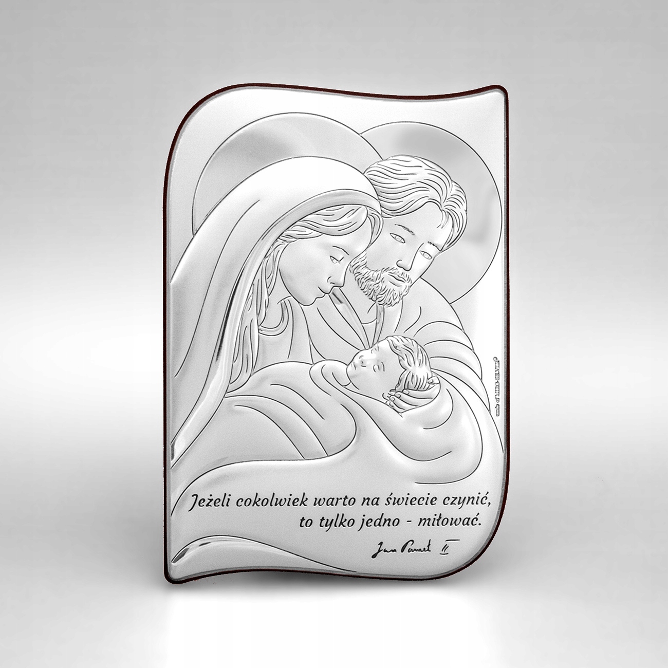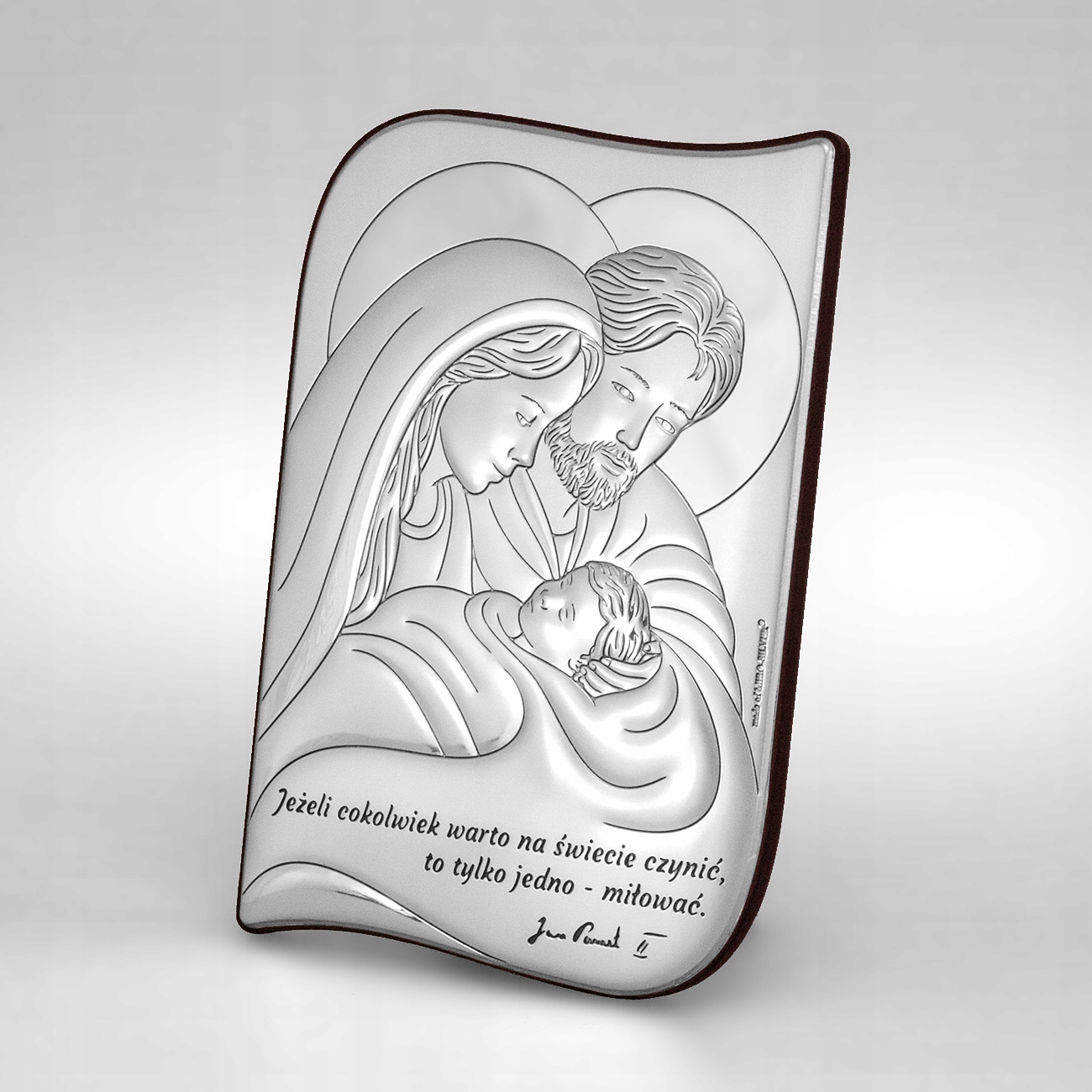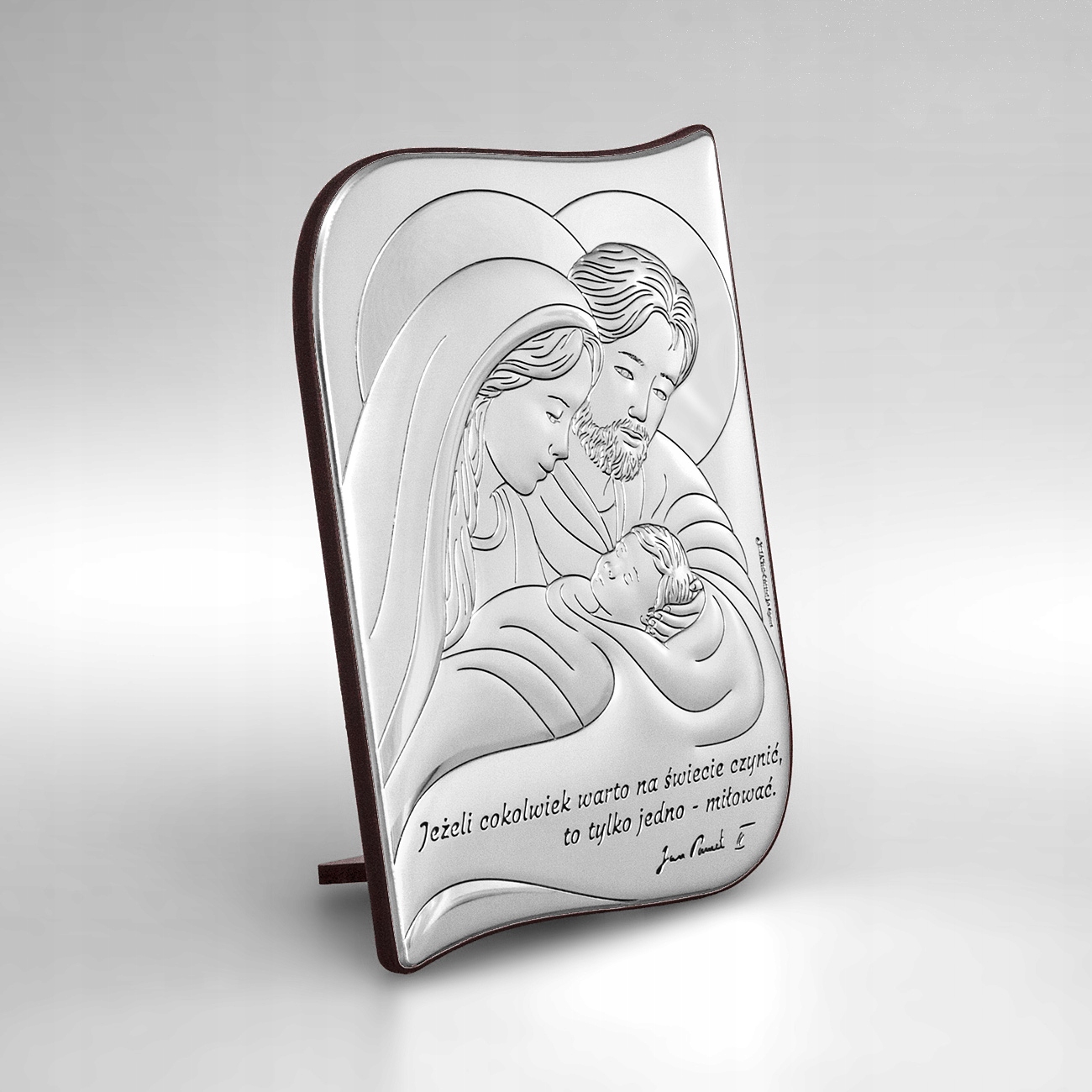 Серебряное изображение Святого Семейства с Младенцем с цитатой Иоанна Павла II «Если что-нибудь стоит делать в мире, то есть только одно» вещь - любить."