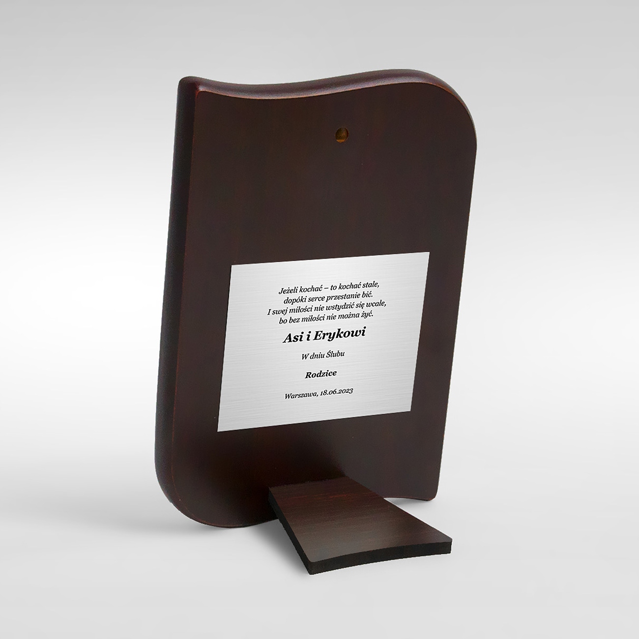 Посвященная табличка размещается на обратной стороне серебряной картины и выполнена в технике гравировки, что означает, что выбранный вами текст будет напечатан на тонкой алюминиевой пластине. Техника гравировки гарантирует привлекательный внешний вид тарелки и ее долговечность. И самое главное, он не мешает поверхности серебряной картины, поэтому не становится персонализированным товаром - поэтому вы можете вернуть его в течение 14 дней без объяснения причин.