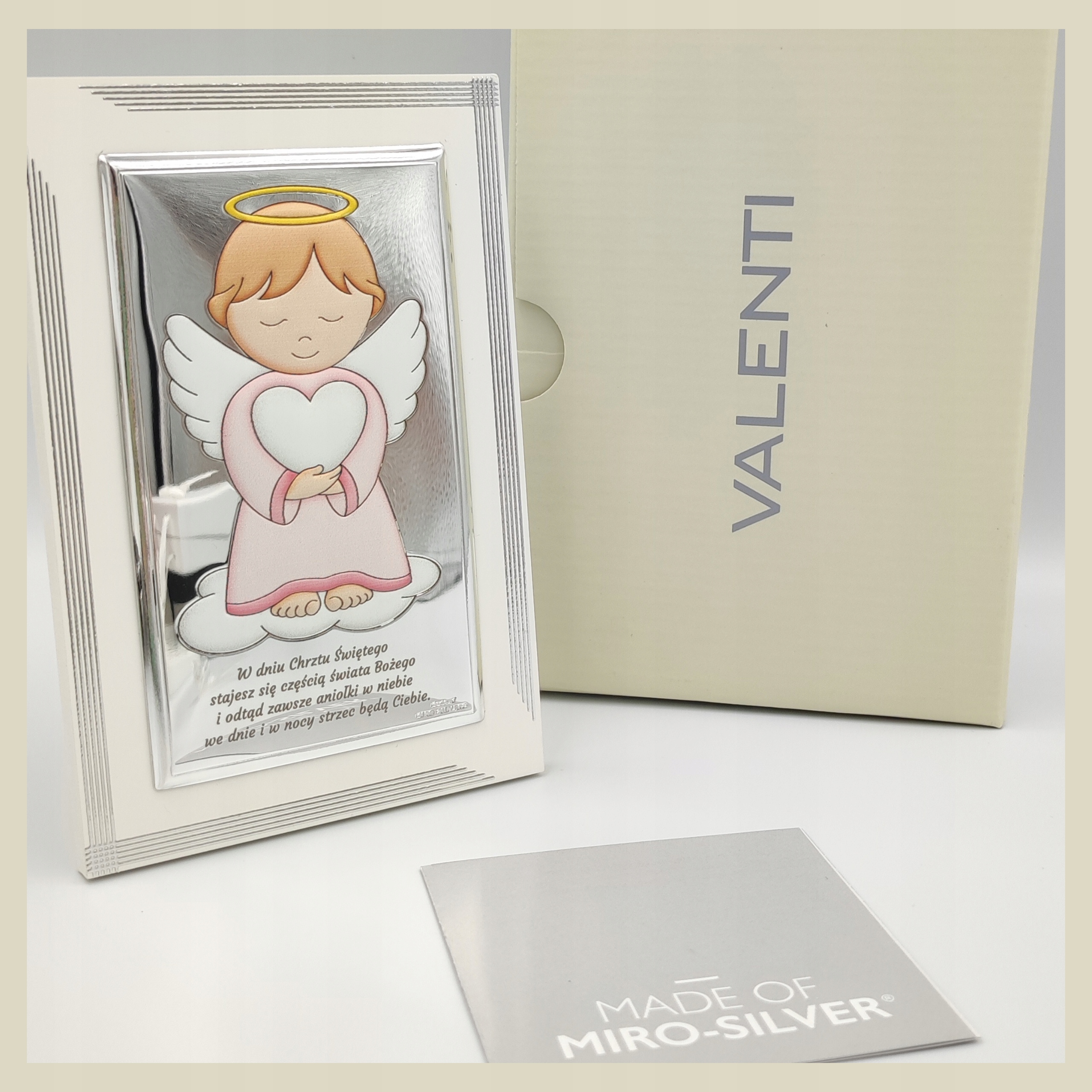 СЕРЕБРЯНАЯ КАРТИНА СО СВЯТЫМ КРЕЩЕНИЕМ СУВЕНИР ДЛЯ ДЕВОЧКИ, РОЗОВАЯ 11,5 х 17,5 + БЕСПЛАТНАЯ ГРАВИРОВКА ВАЛЕНТИ